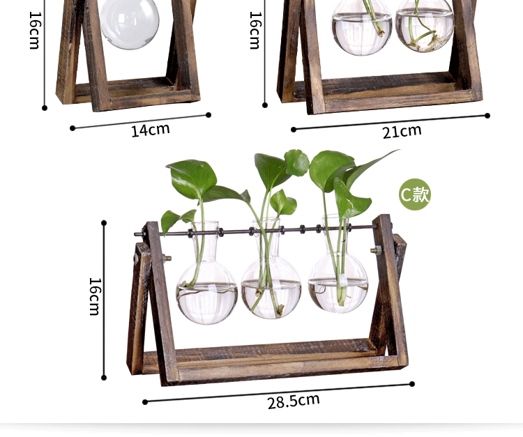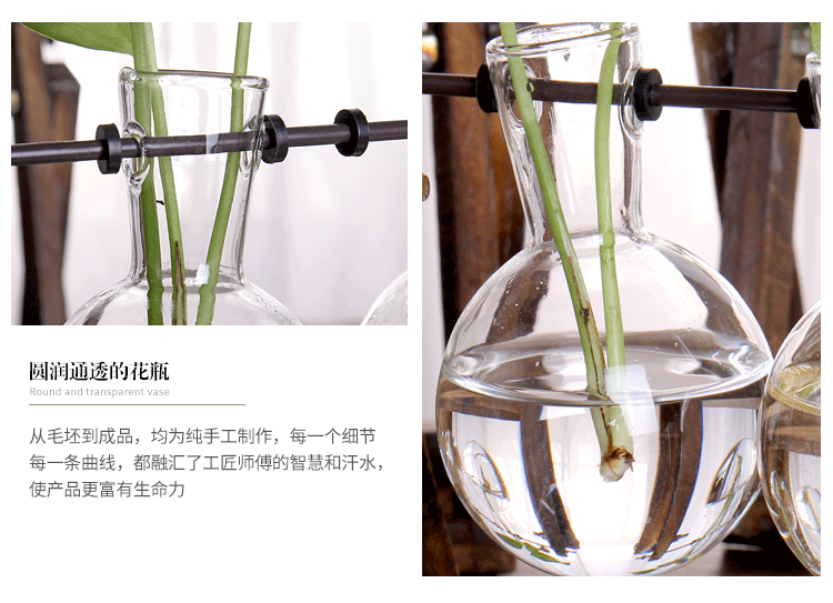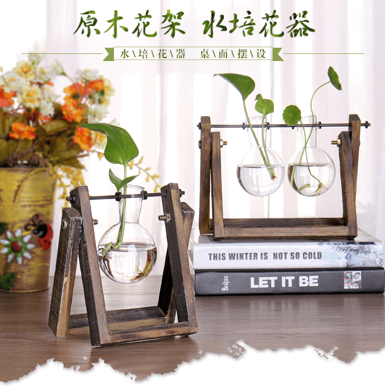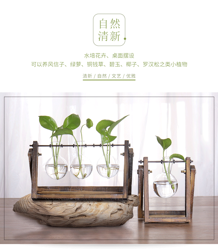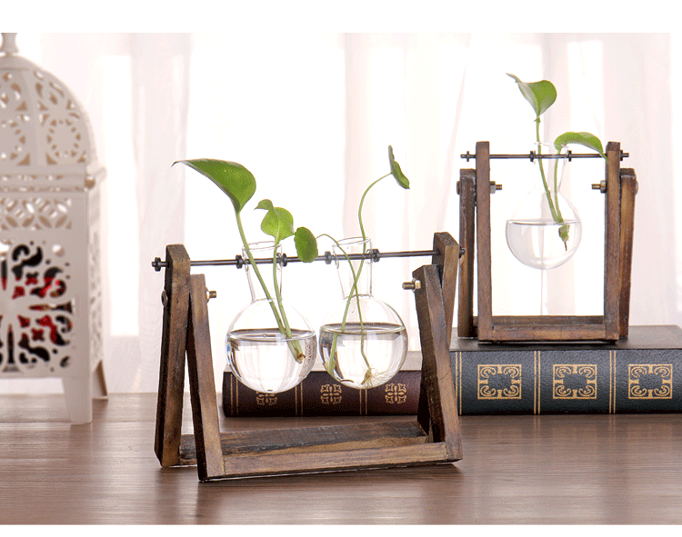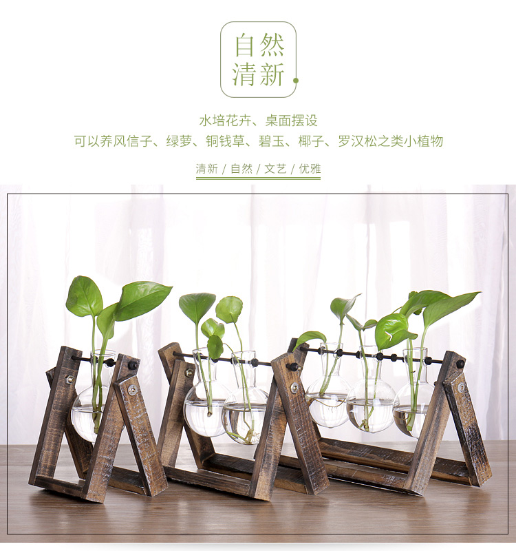 創意木架水培容器綠蘿植物玻璃花器客廳小花瓶辦公室桌面裝飾擺件1入
