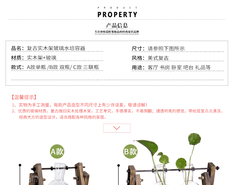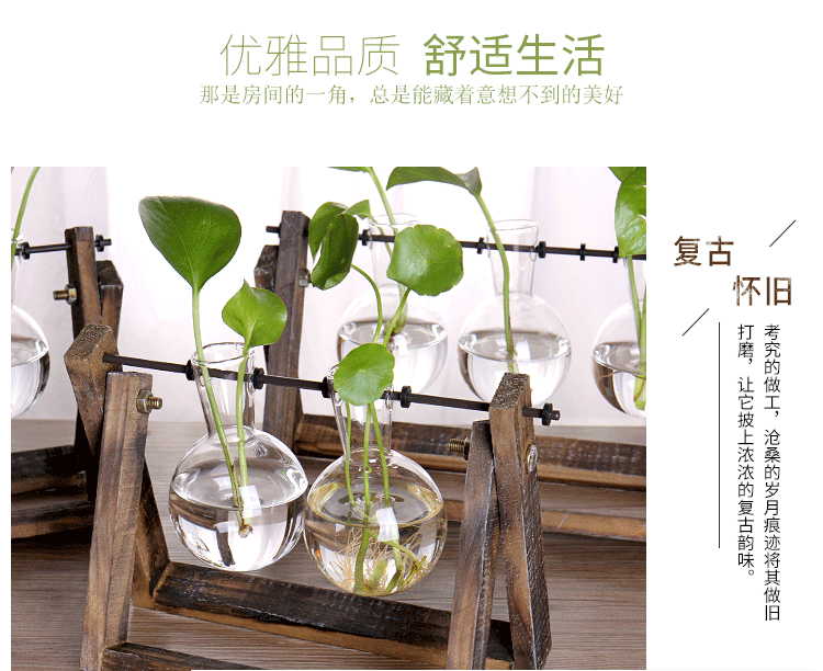 優質的玻璃材質,復古做舊的實木處理,工藝精,手感厚實,穩固擺放;