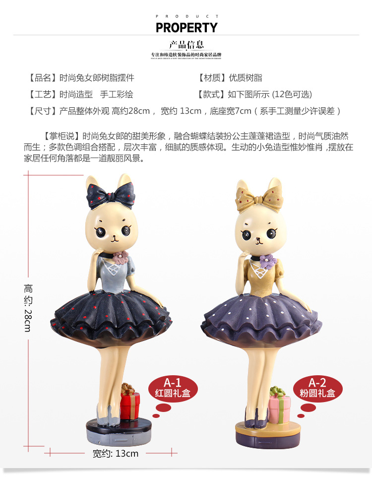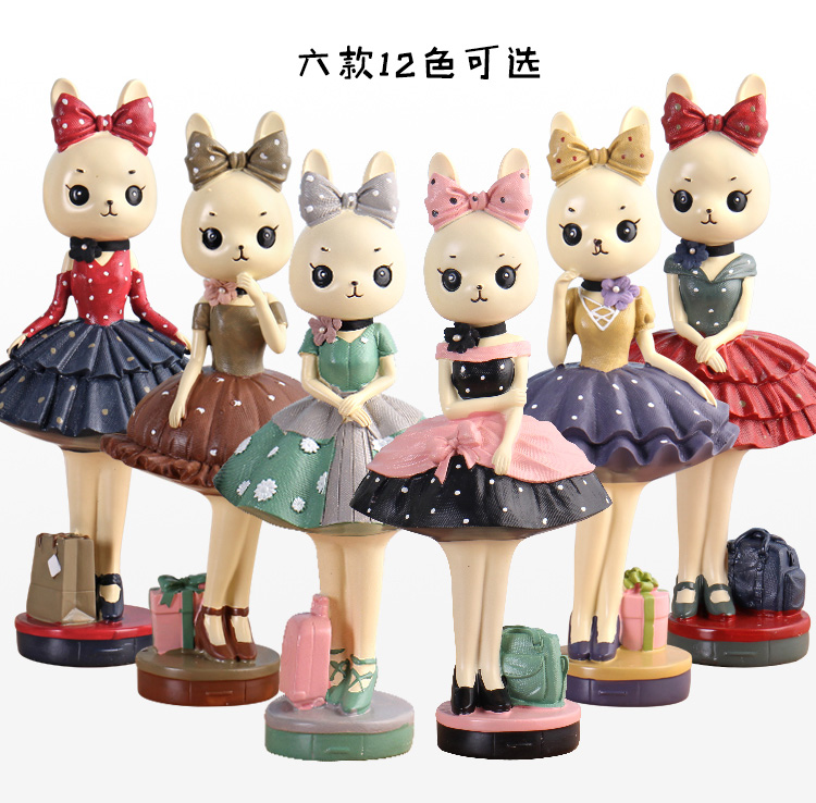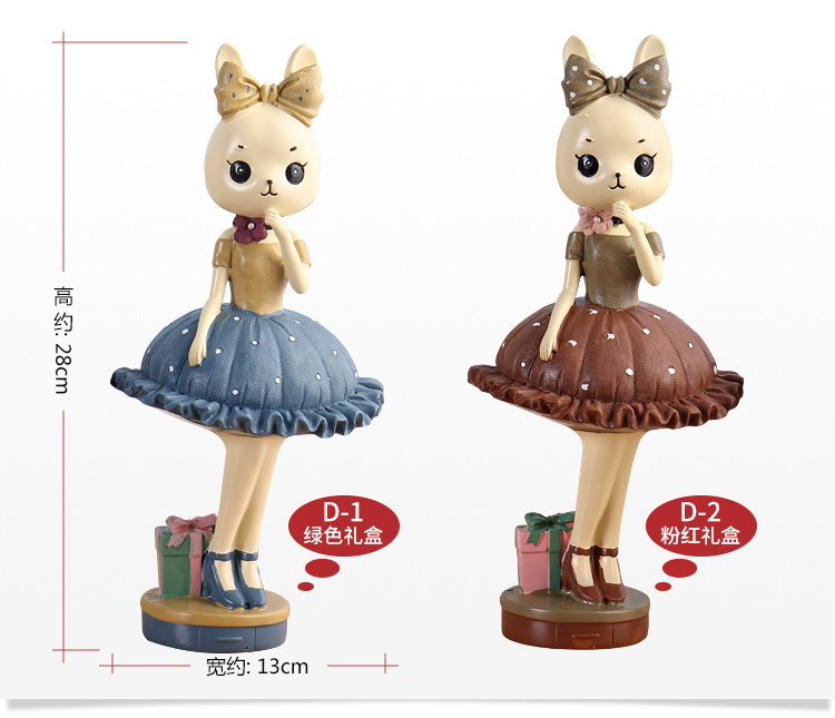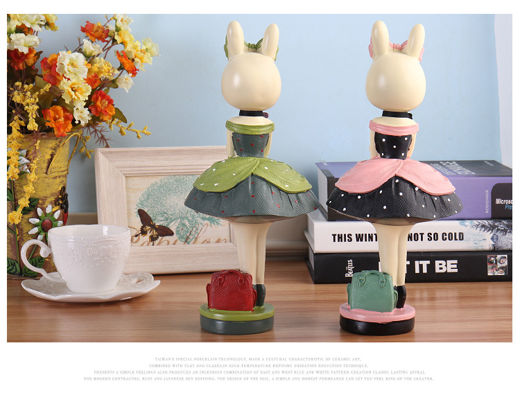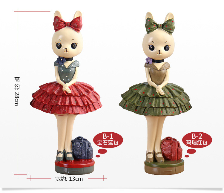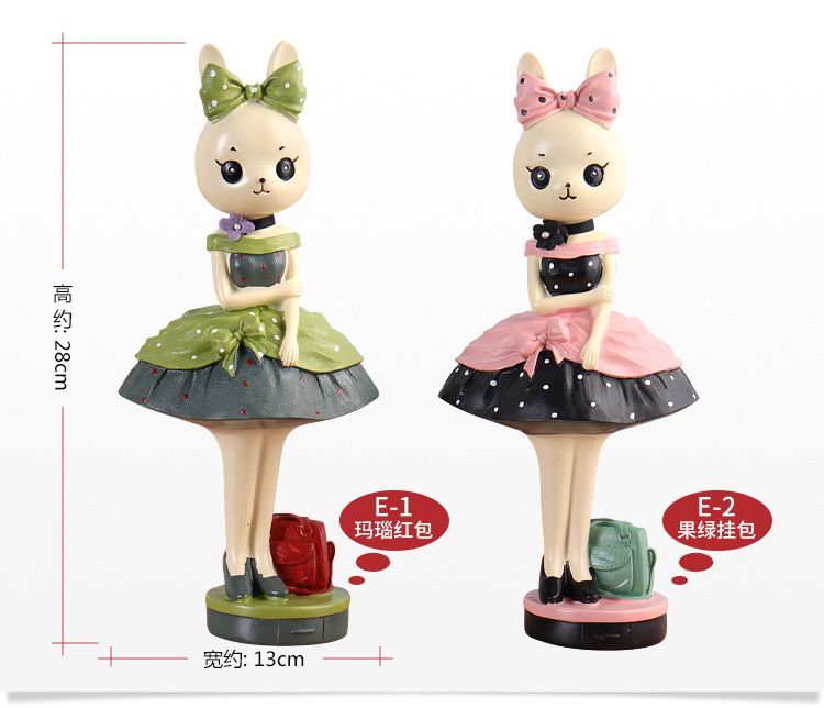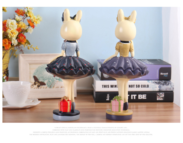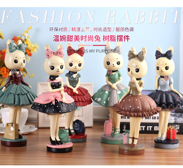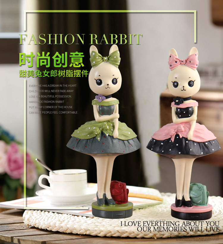 時尚兔女郎的甜美形象,融合蝴蝶結裝扮公主蓬蓬裙造型,時尚氣質油然而生;多款色調組合搭配,層次豐富,細膩的質感體現。生動的小兔造型惟妙惟肖,擺放在家居任何角落都是一道靚麗風景。