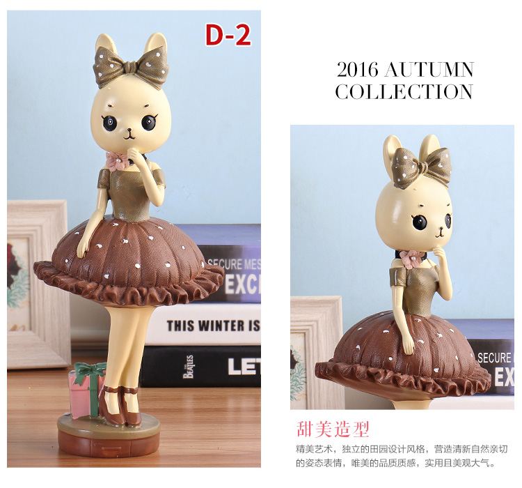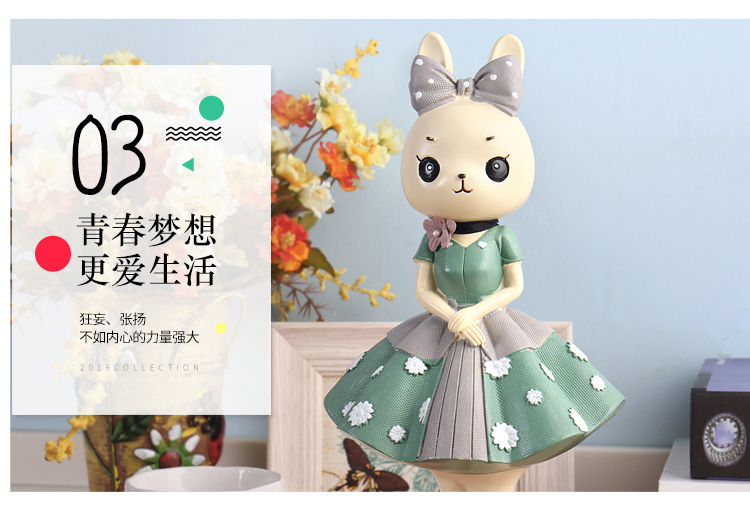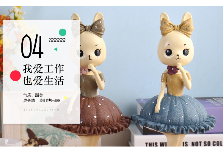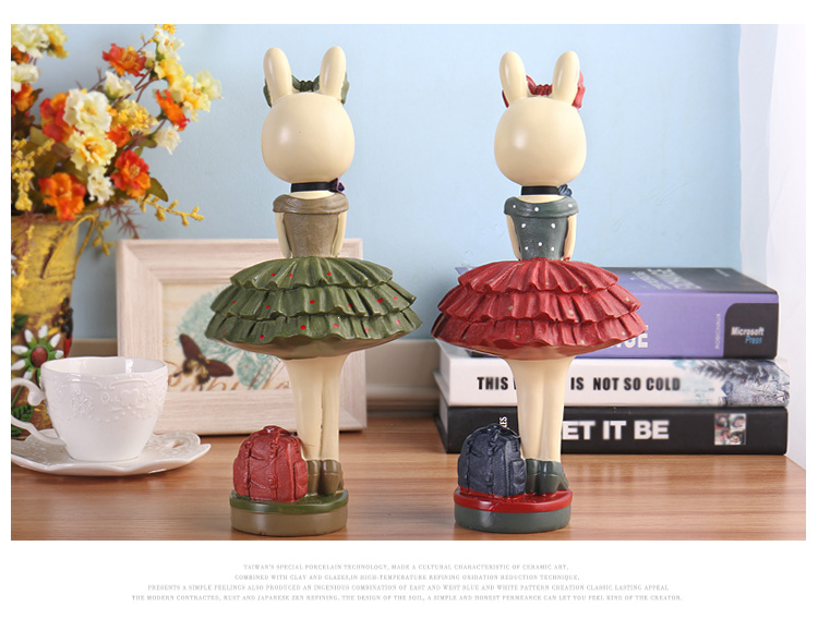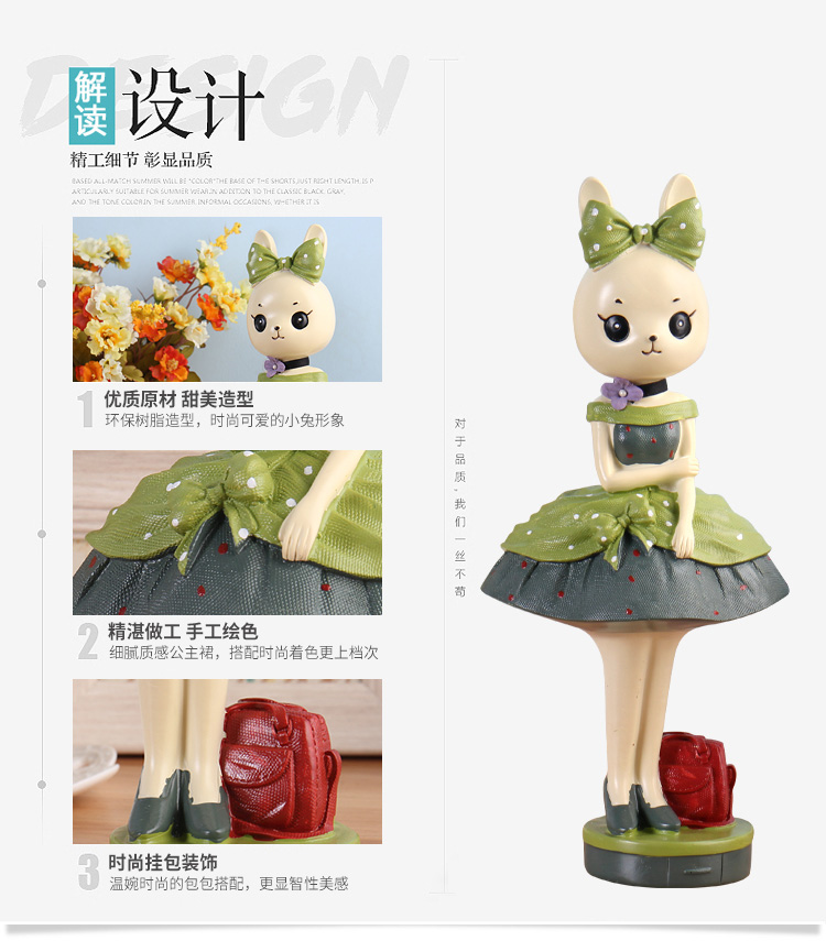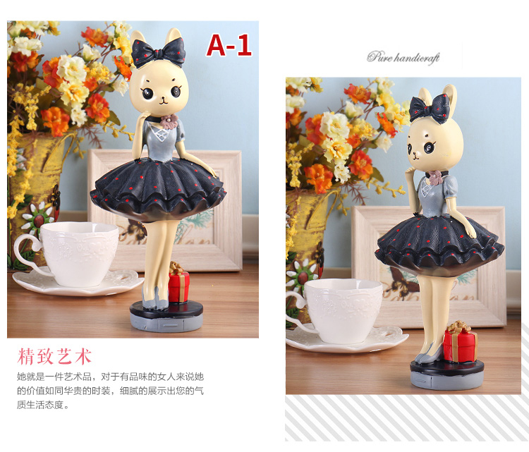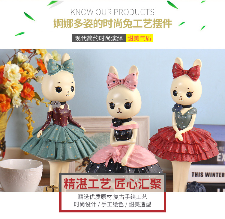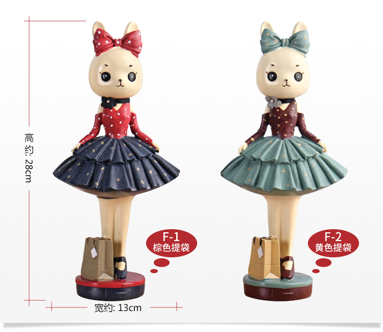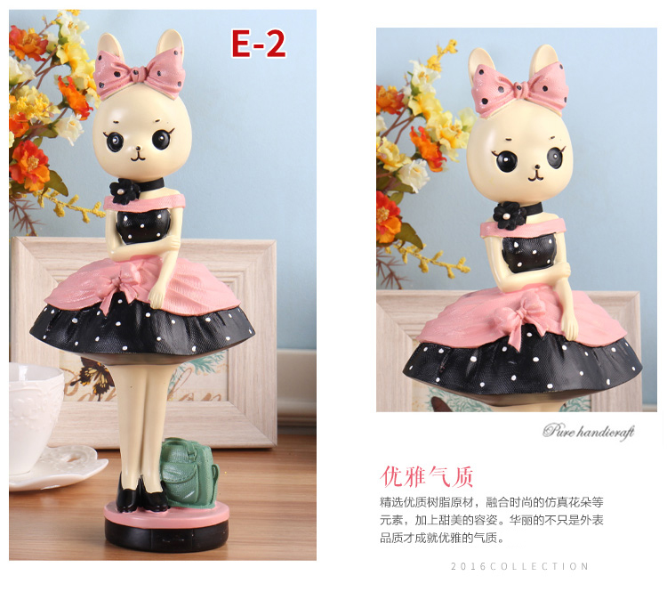 時尚兔女郎的甜美形象,融合蝴蝶結裝扮公主蓬蓬裙造型,時尚氣質油然而生;多款色調組合搭配,層次豐富,細膩的質感體現。生動的小兔造型惟妙惟肖,擺放在家居任何角落都是一道靚麗風景。