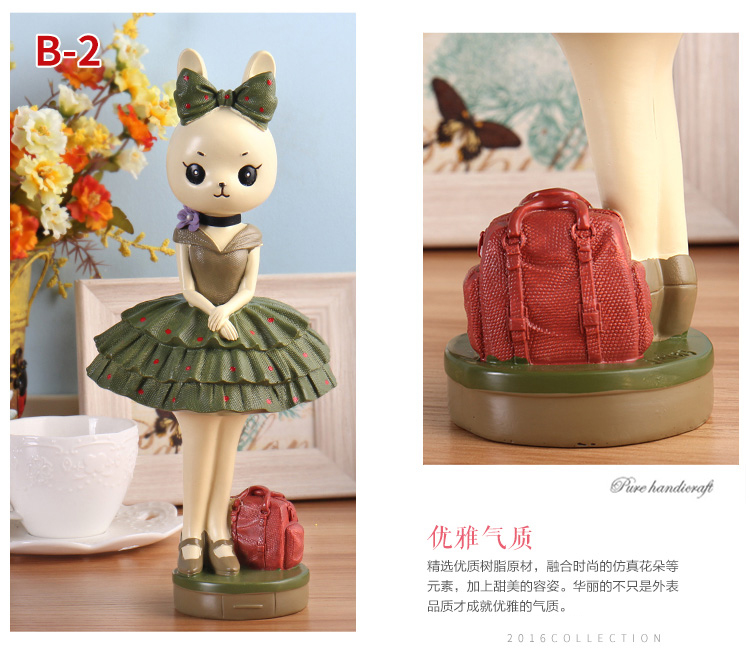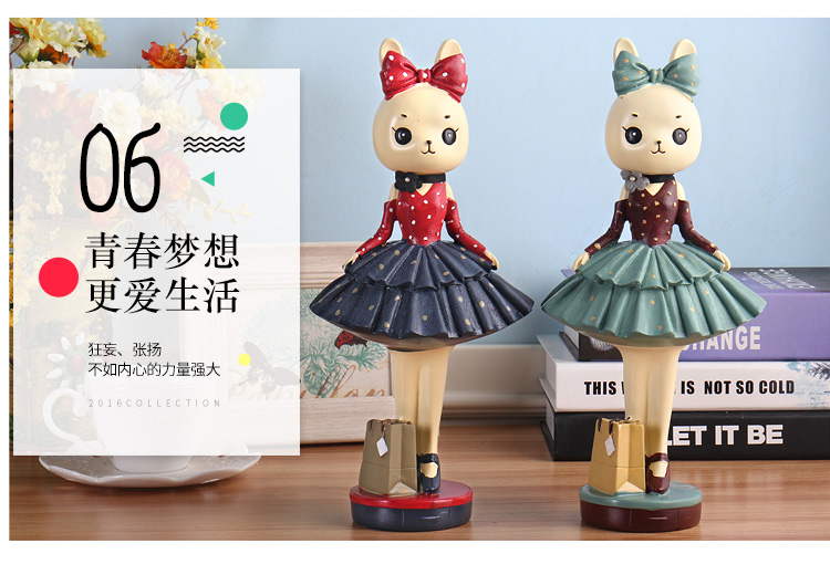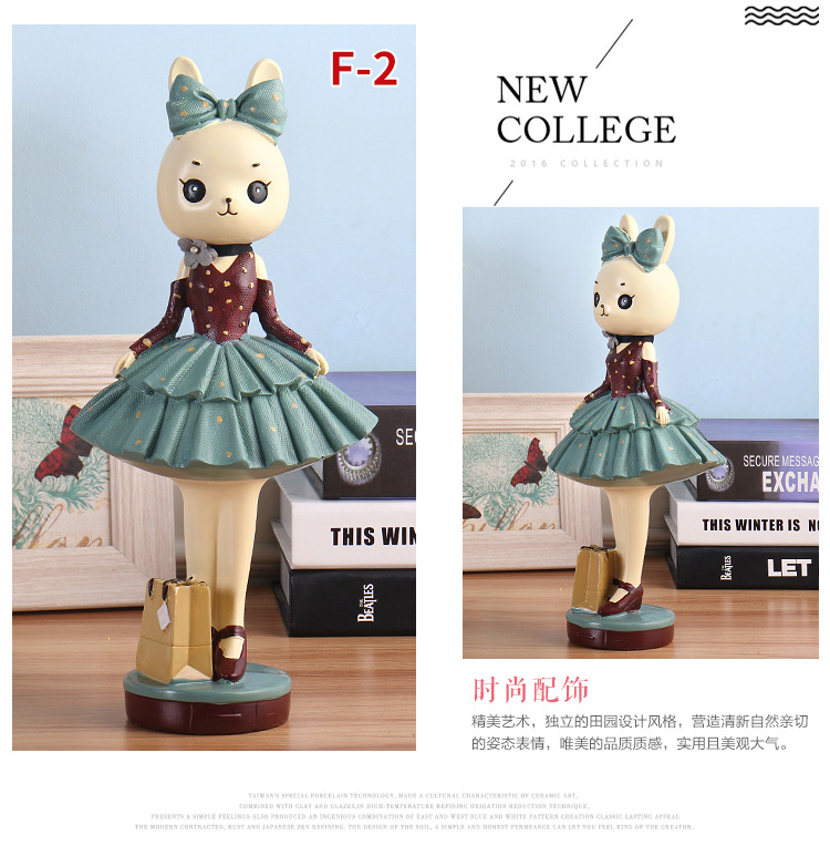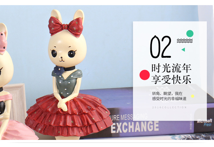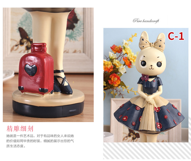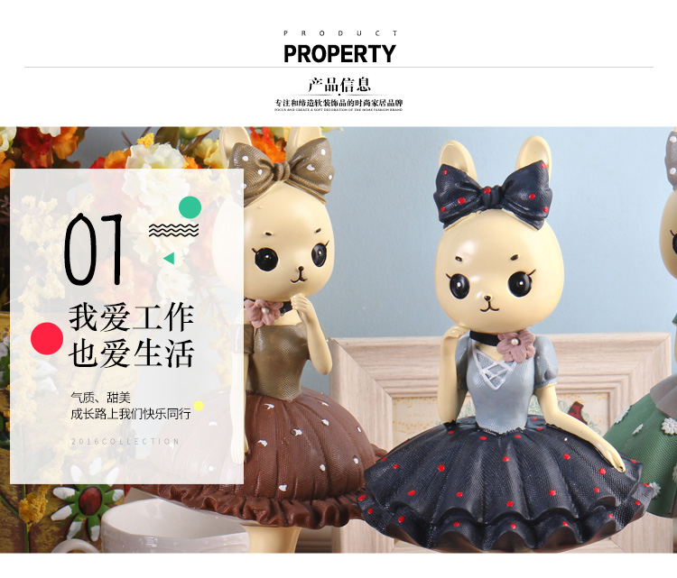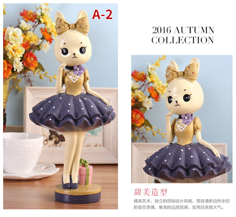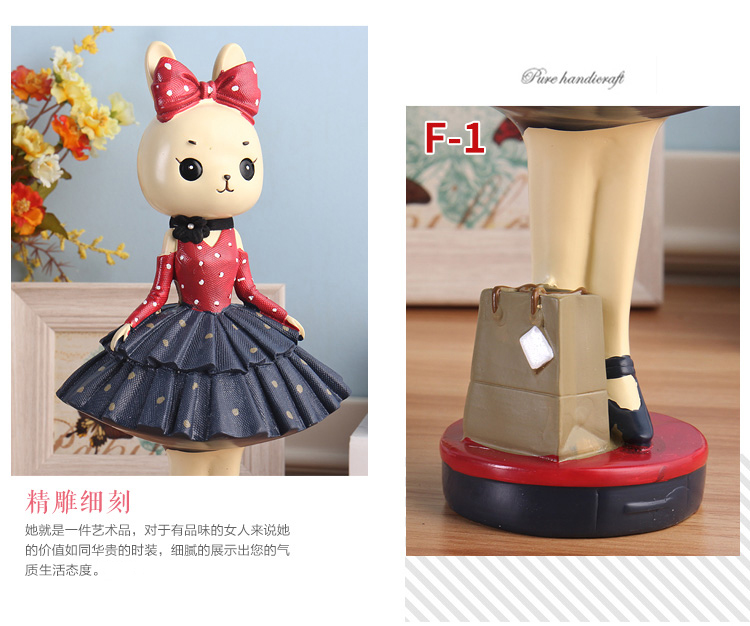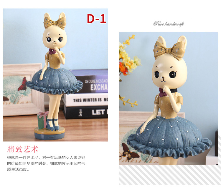 時尚兔女郎的甜美形象,融合蝴蝶結裝扮公主蓬蓬裙造型,時尚氣質油然而生;多款色調組合搭配,層次豐富,細膩的質感體現。生動的小兔造型惟妙惟肖,擺放在家居任何角落都是一道靚麗風景。