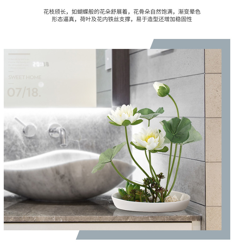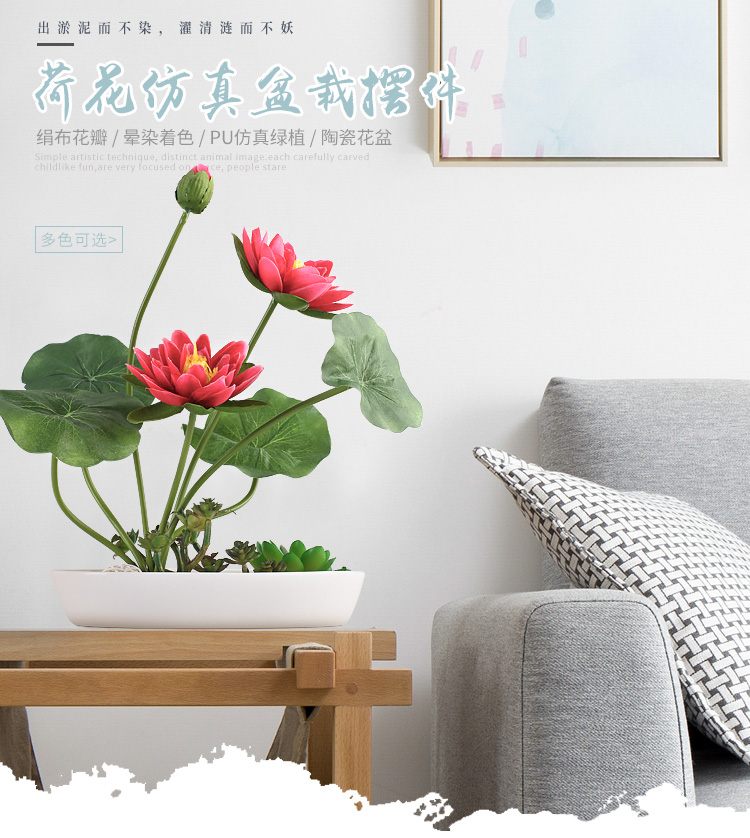 仿真花套裝蓮花客廳餐桌電視柜荷花盆栽擺設裝飾花藝花卉酒柜插花1入