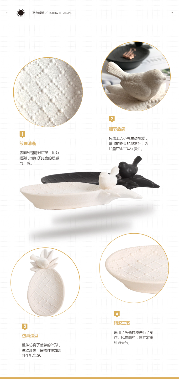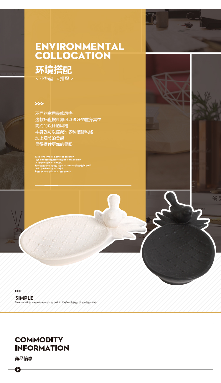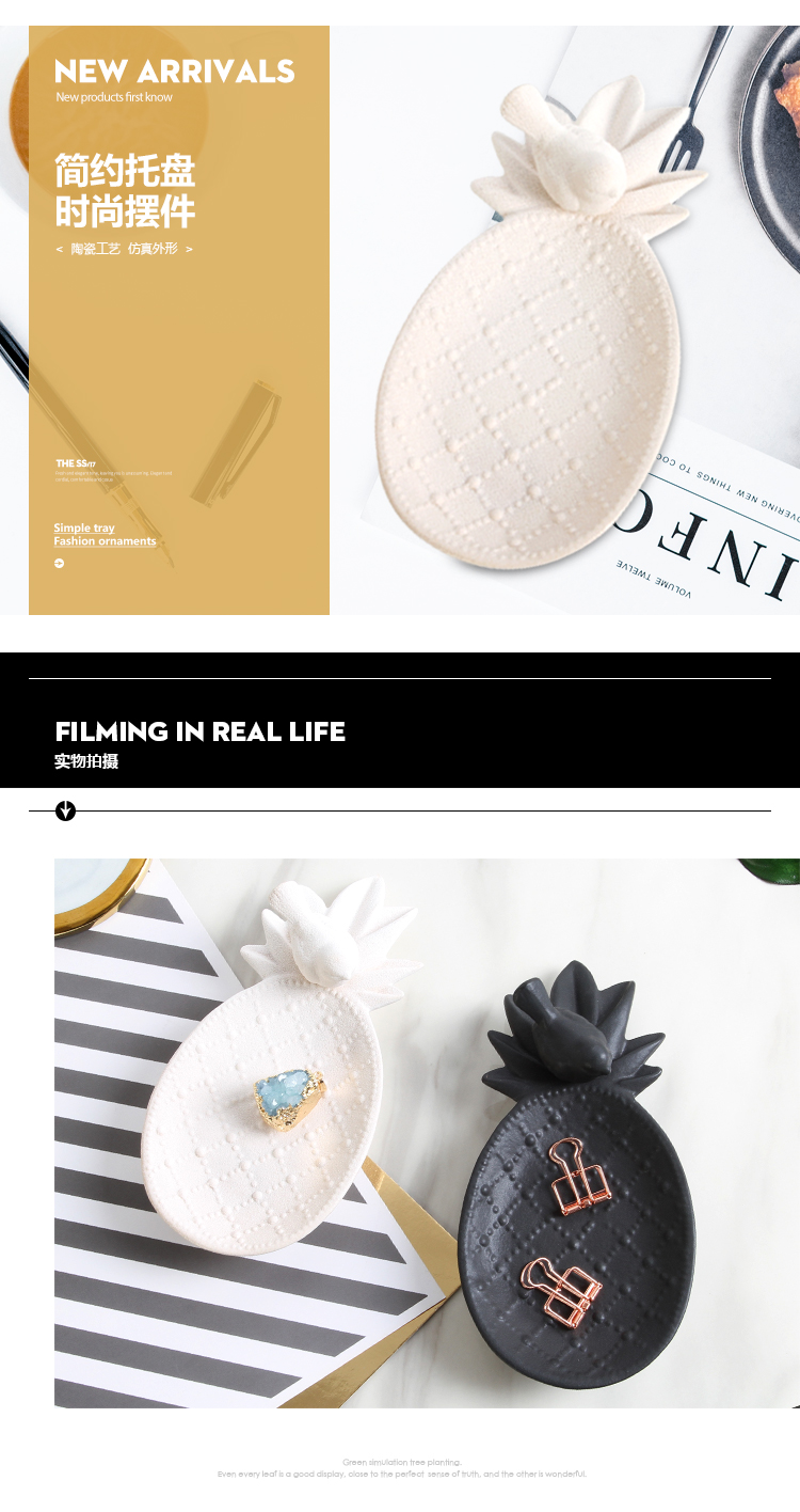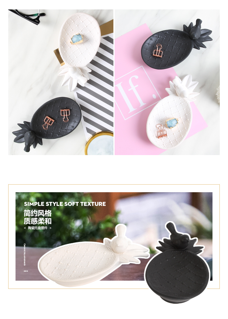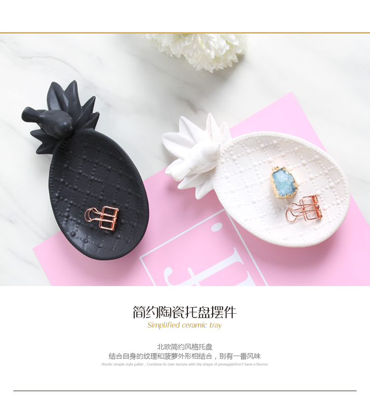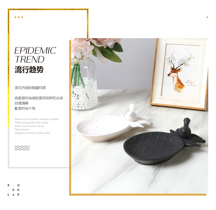 北歐ins創意陶瓷收納小托盤美式鑰匙首飾盒電視柜桌面裝飾品擺件1入