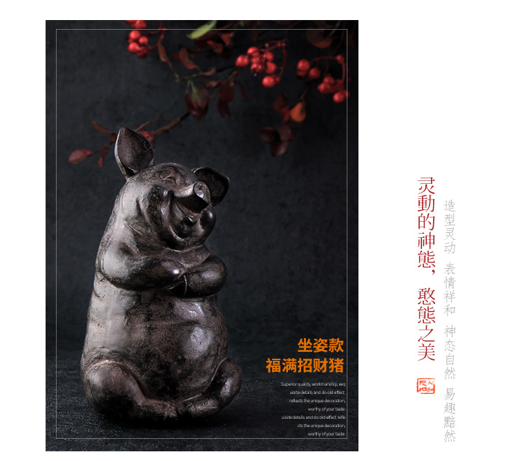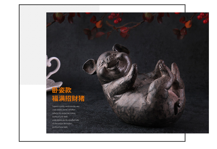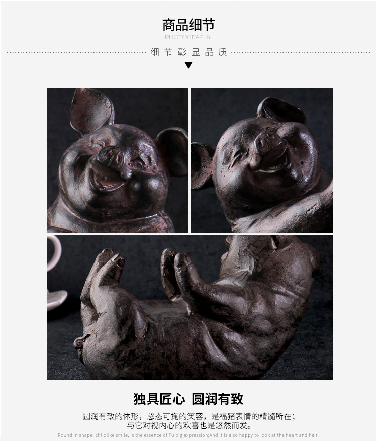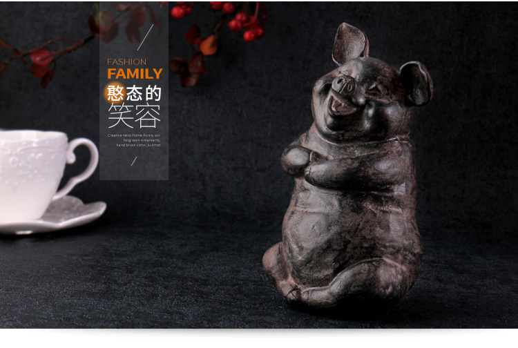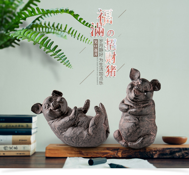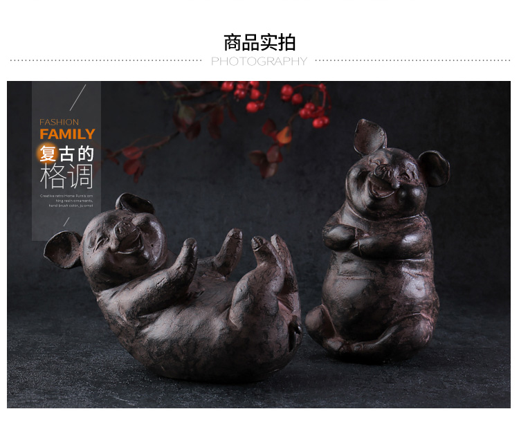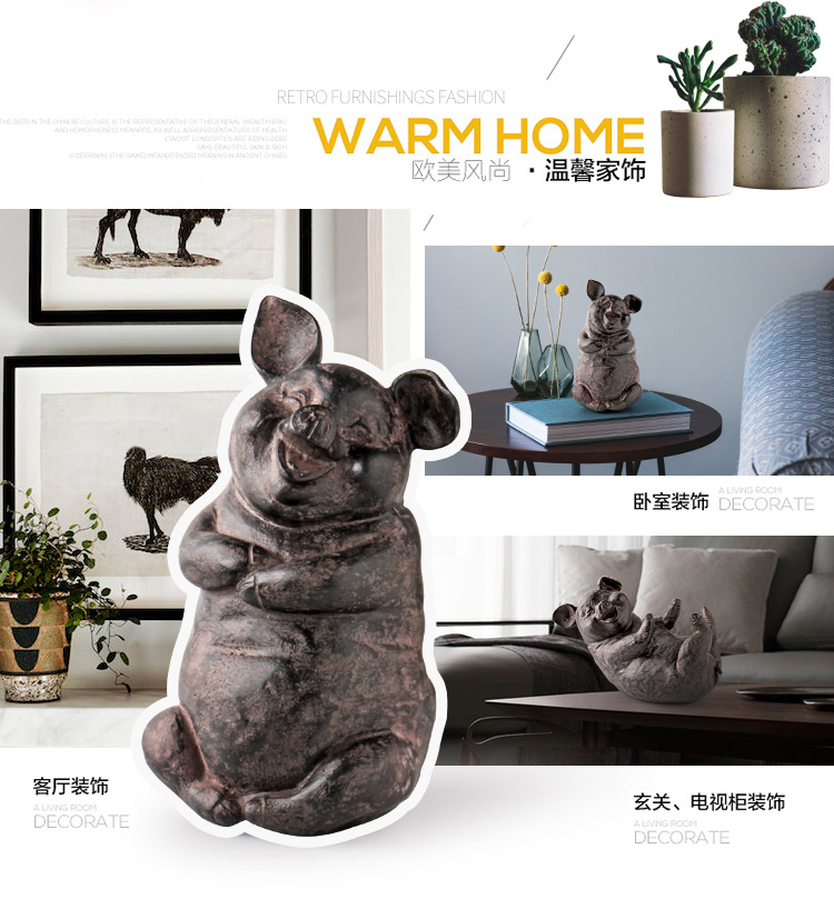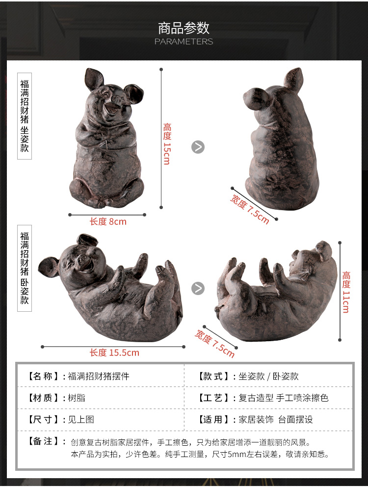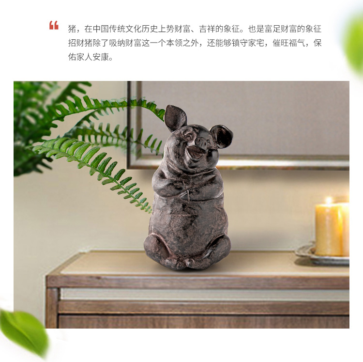創意復古招財豬擺設家居裝飾品樹脂動物裝飾工藝品客廳電視柜擺件1入