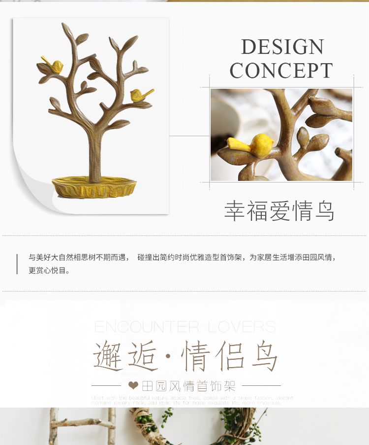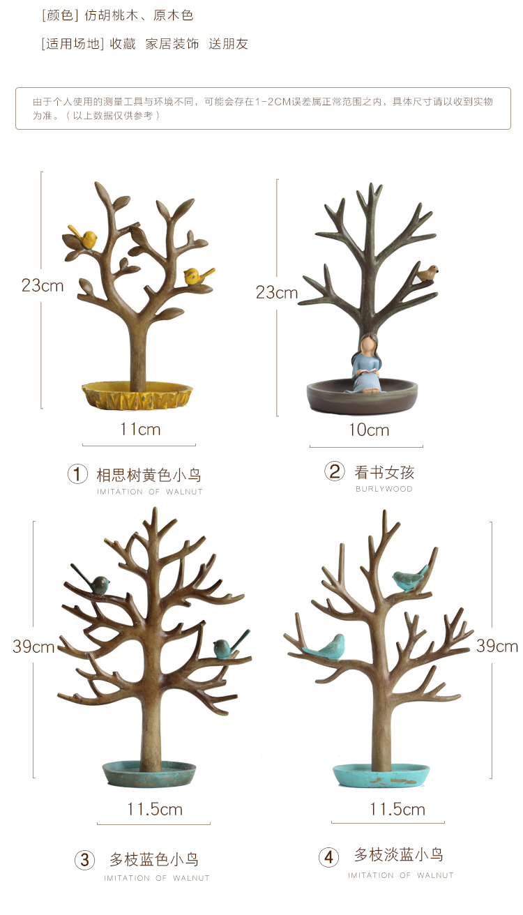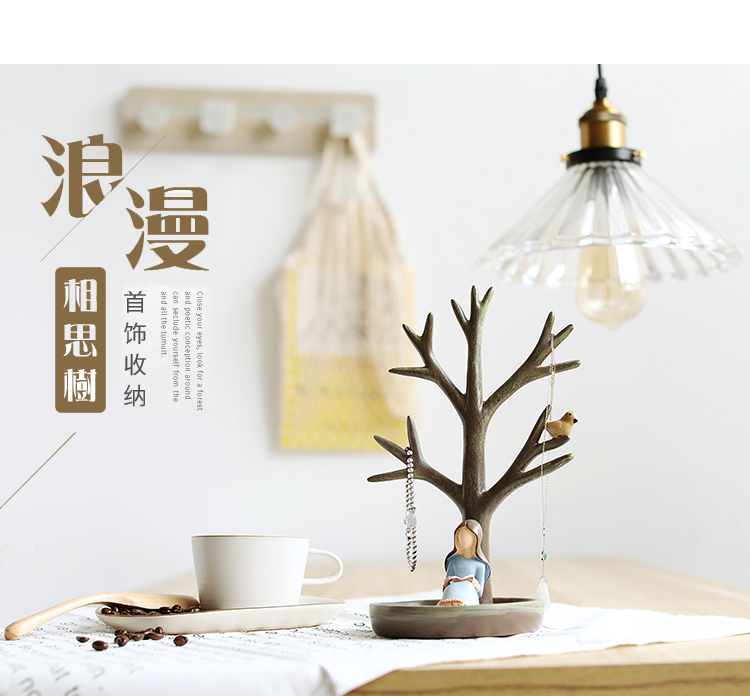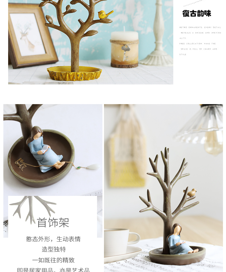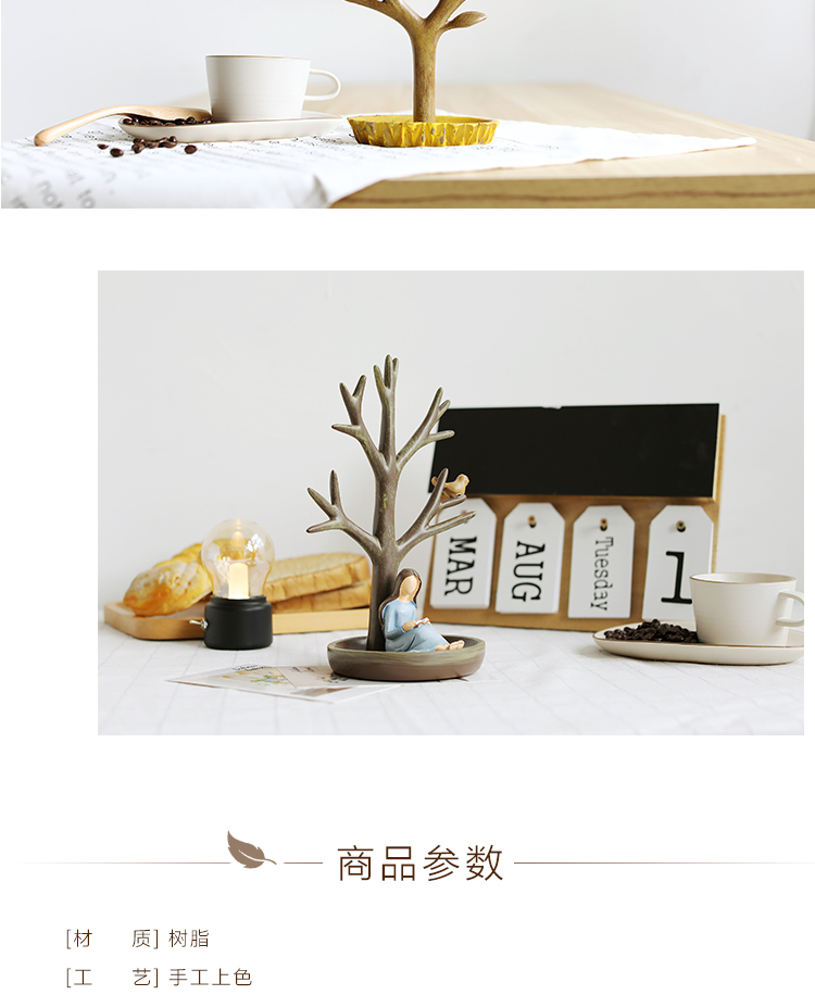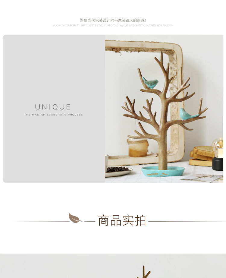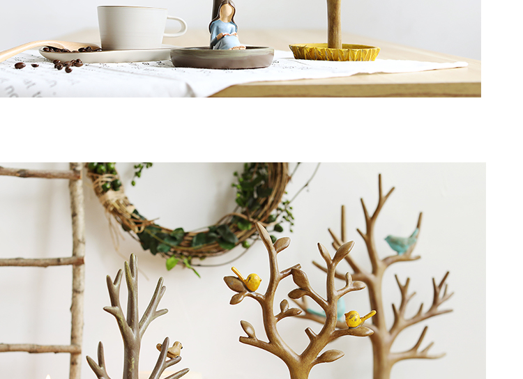 北歐樹形小鳥首飾展示架創意珠寶項鏈托盤擺件飾品戒指玄關收納架1入