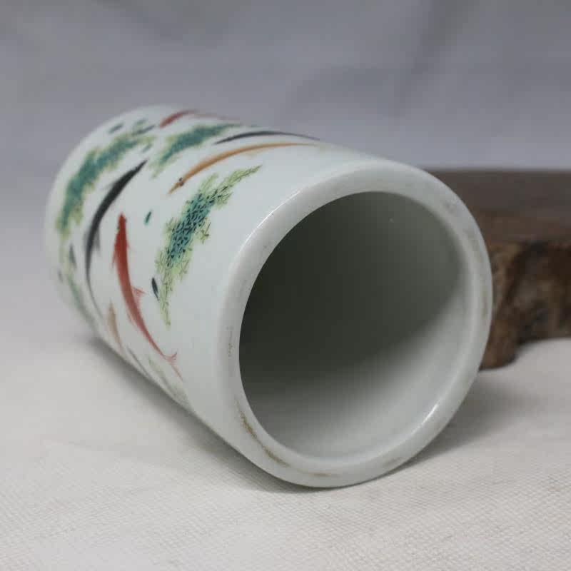 景德鎮仿古瓷 民國粉彩魚嬉戲圖筆筒 文房擺件1入
