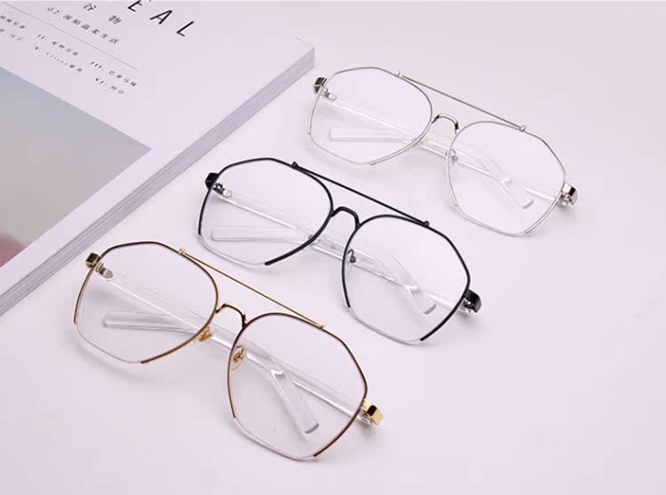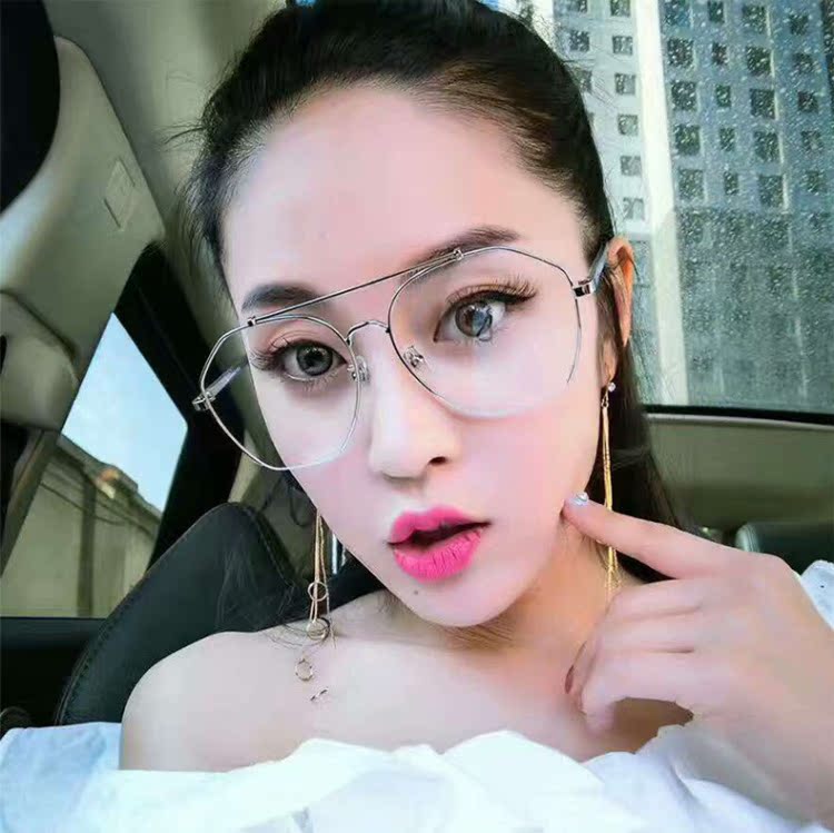 黃子韜同款眼鏡戚薇2020新款多邊形透明海洋色網紅大框圓臉潮1入