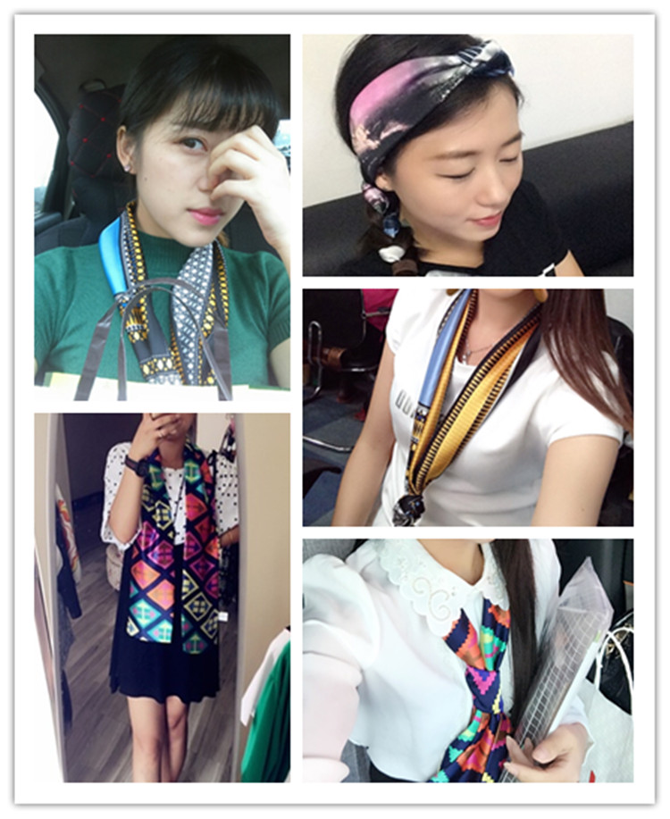 chic韓國新款小絲巾卡通油畫方巾春秋百搭裝飾小領巾減齡發帶頭巾