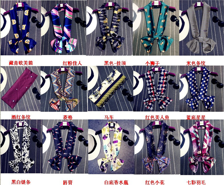 韓國春秋絲巾配飾窄長條印花職業仿真絲領巾時尚百搭小女圍巾長巾1入