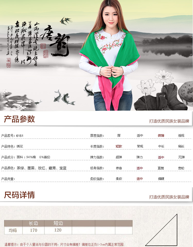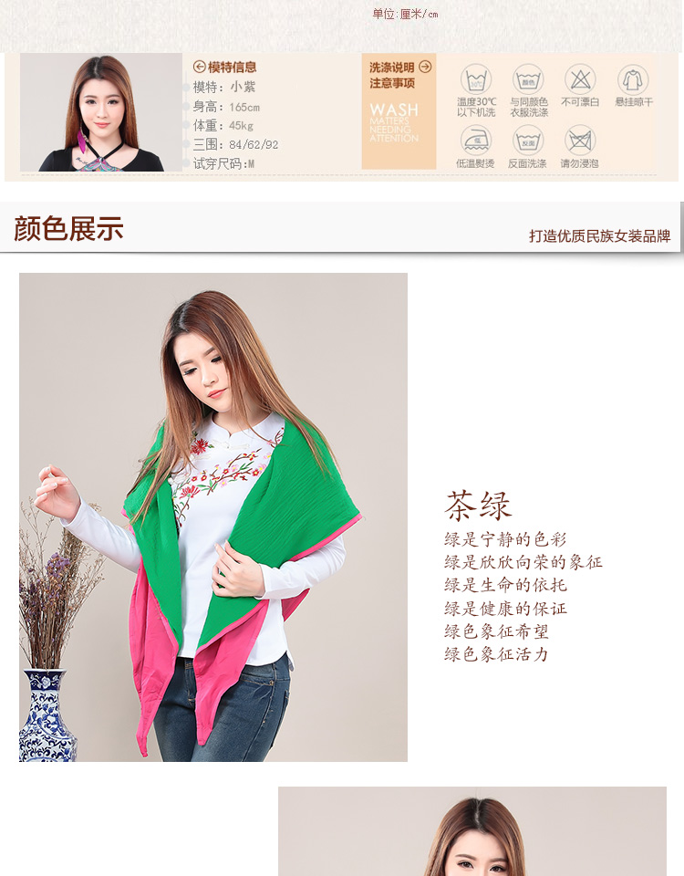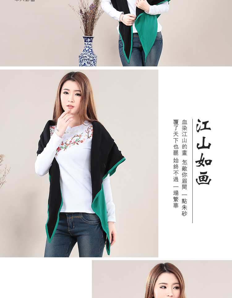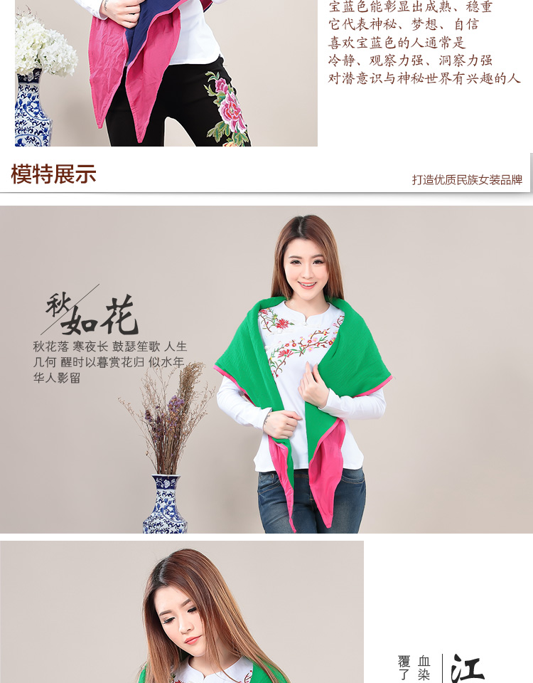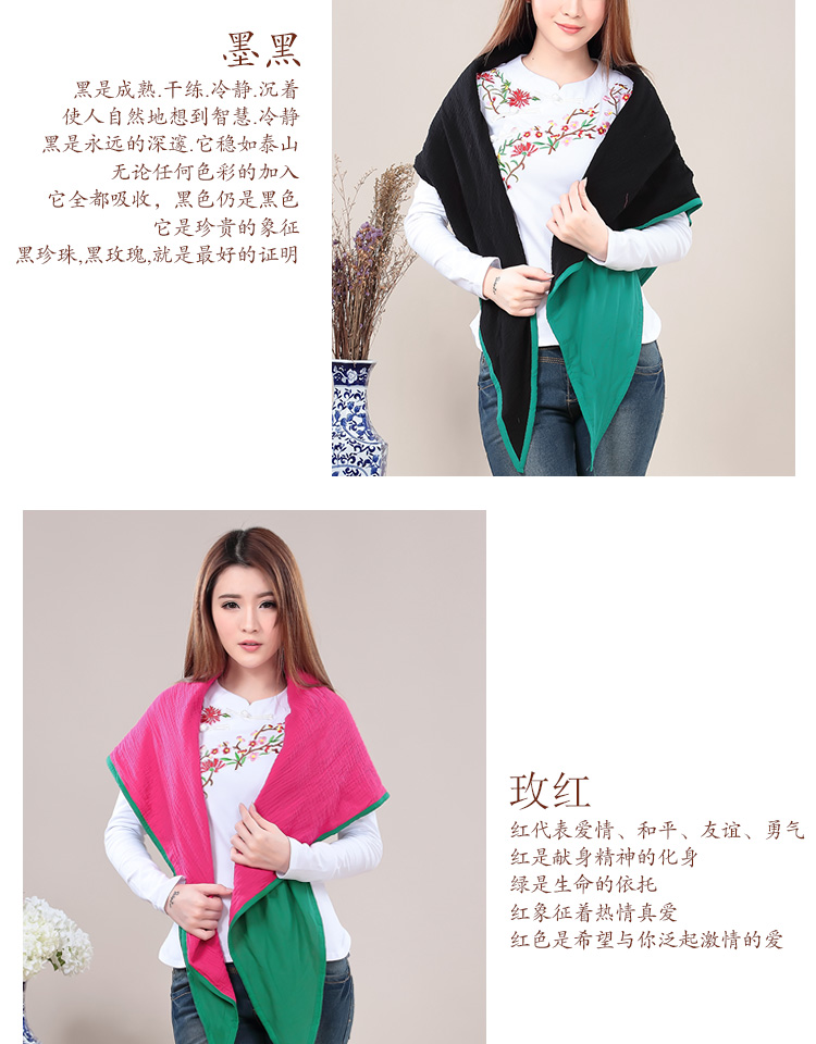 2019春秋冬季新款民族風圍巾配飾繡花披肩方巾復古棉麻圍巾披巾女1入