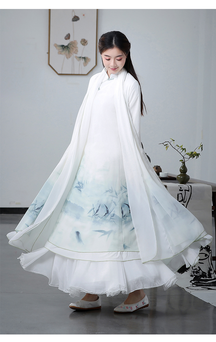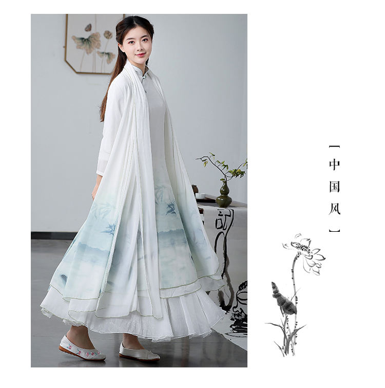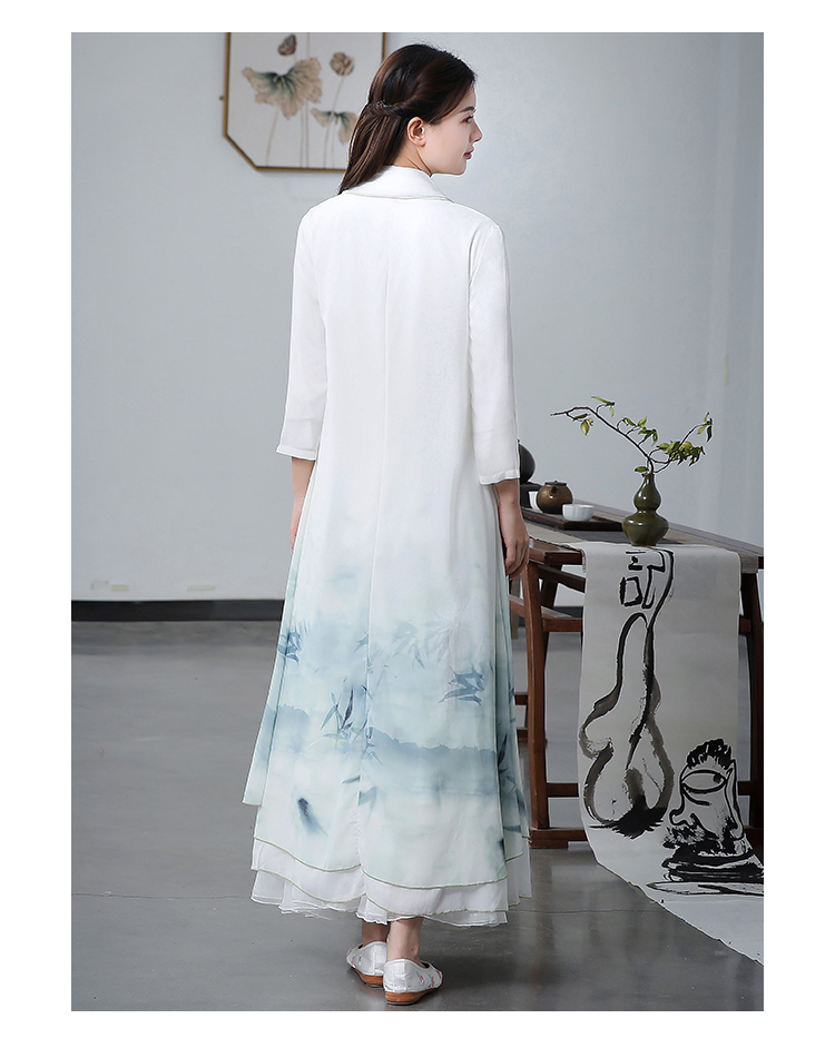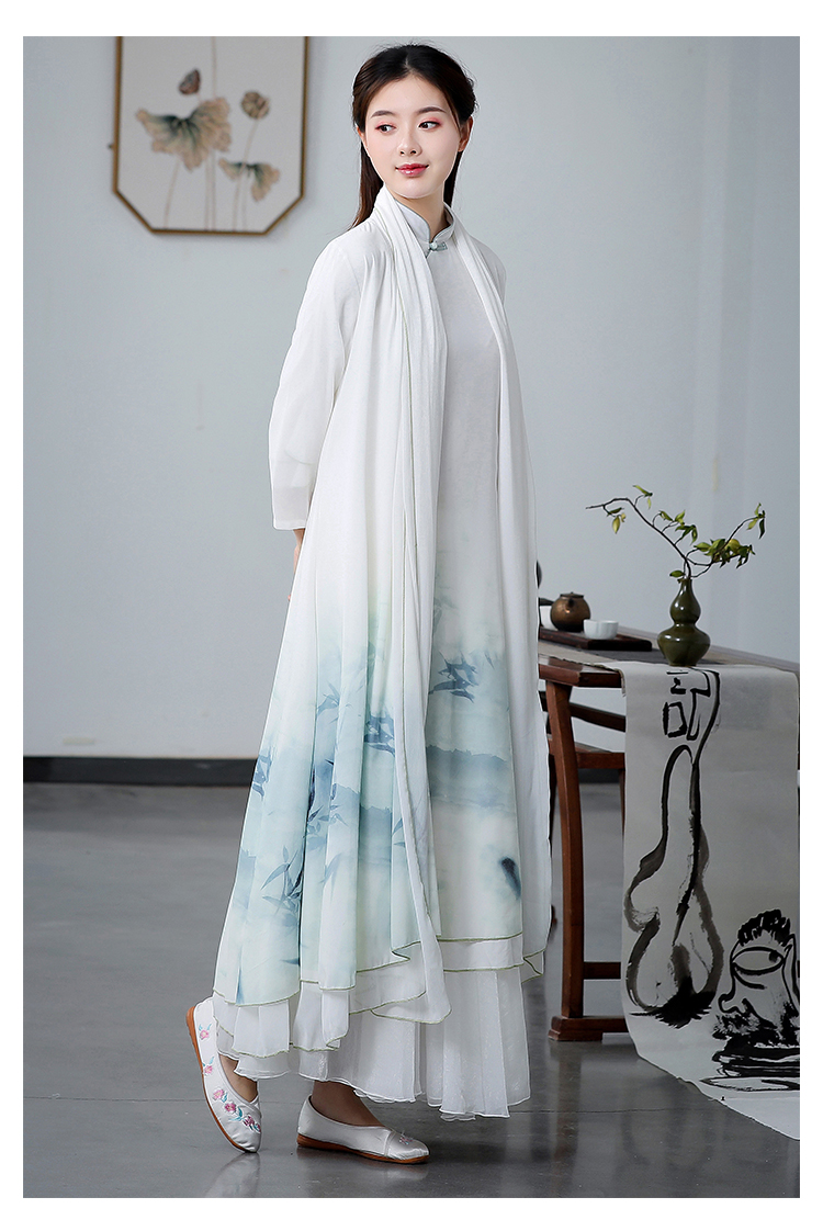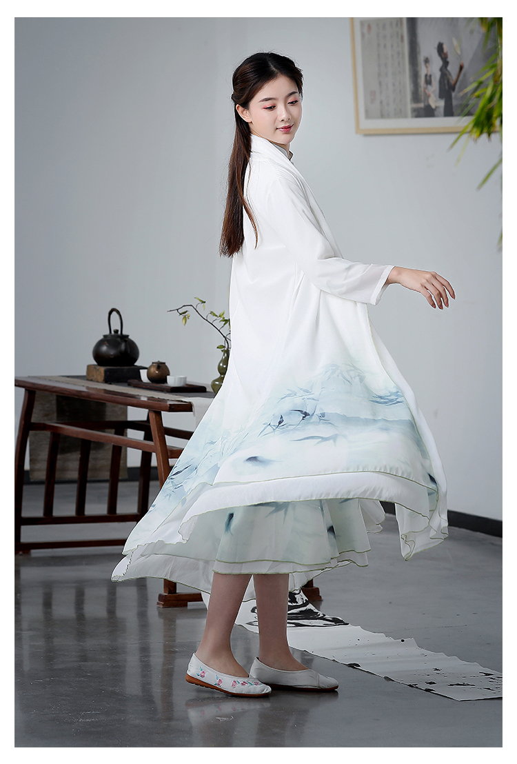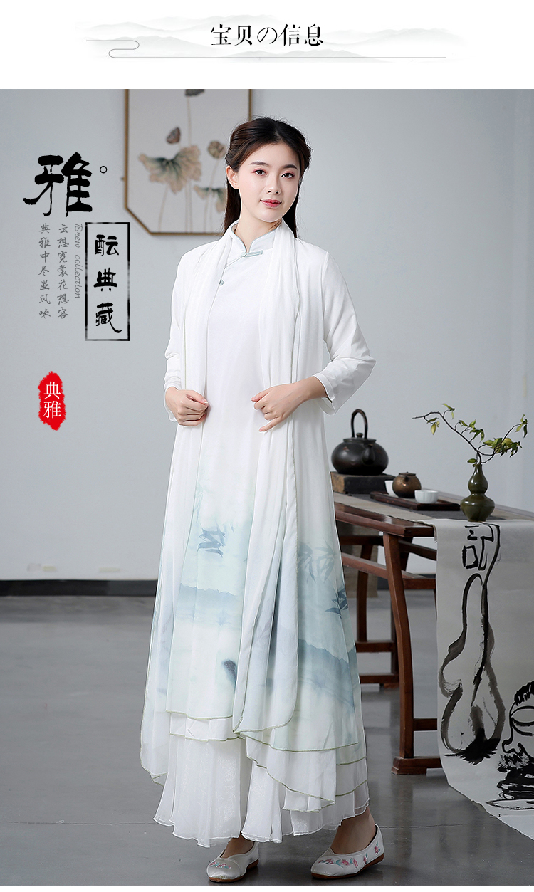 2019新款茶服中式開衫外套漢服女改良民族風寬松大擺中長百搭外套1入