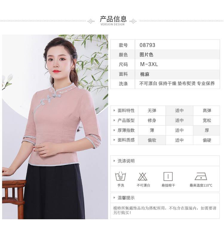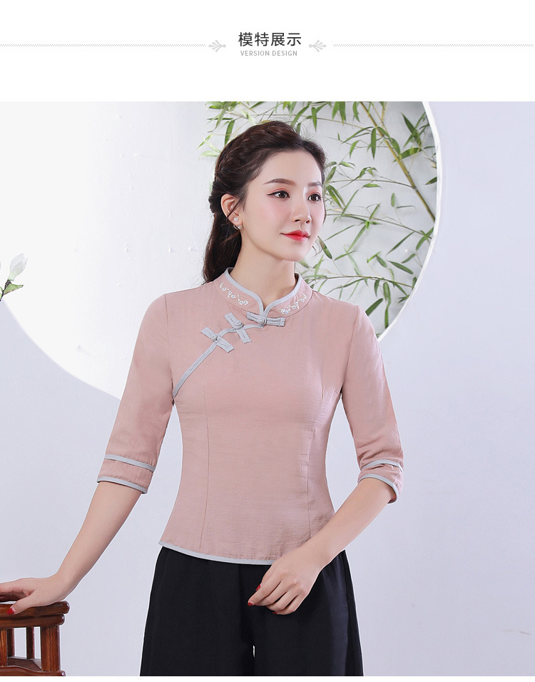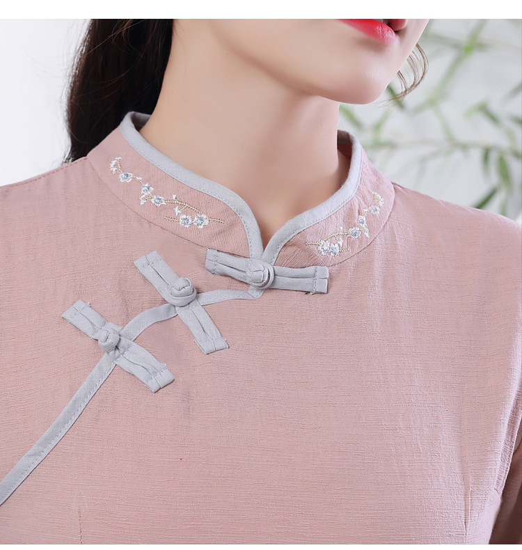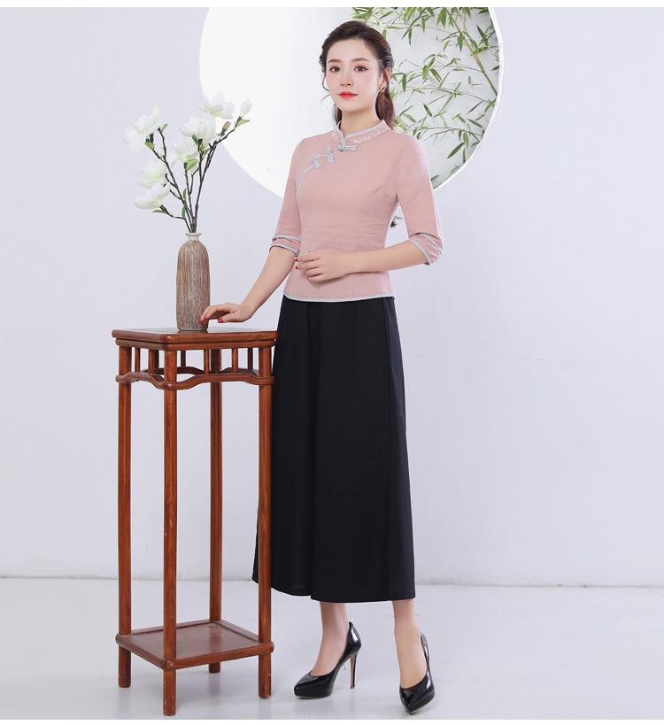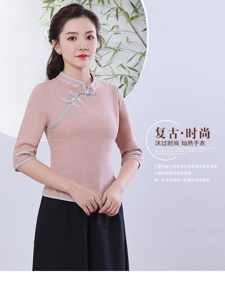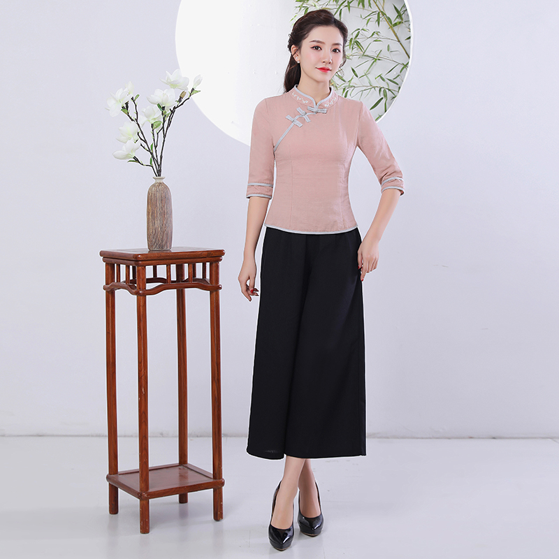 2019春夏季新款原創民族風棉麻上衣中式民國風立領盤扣修身襯衣女1入