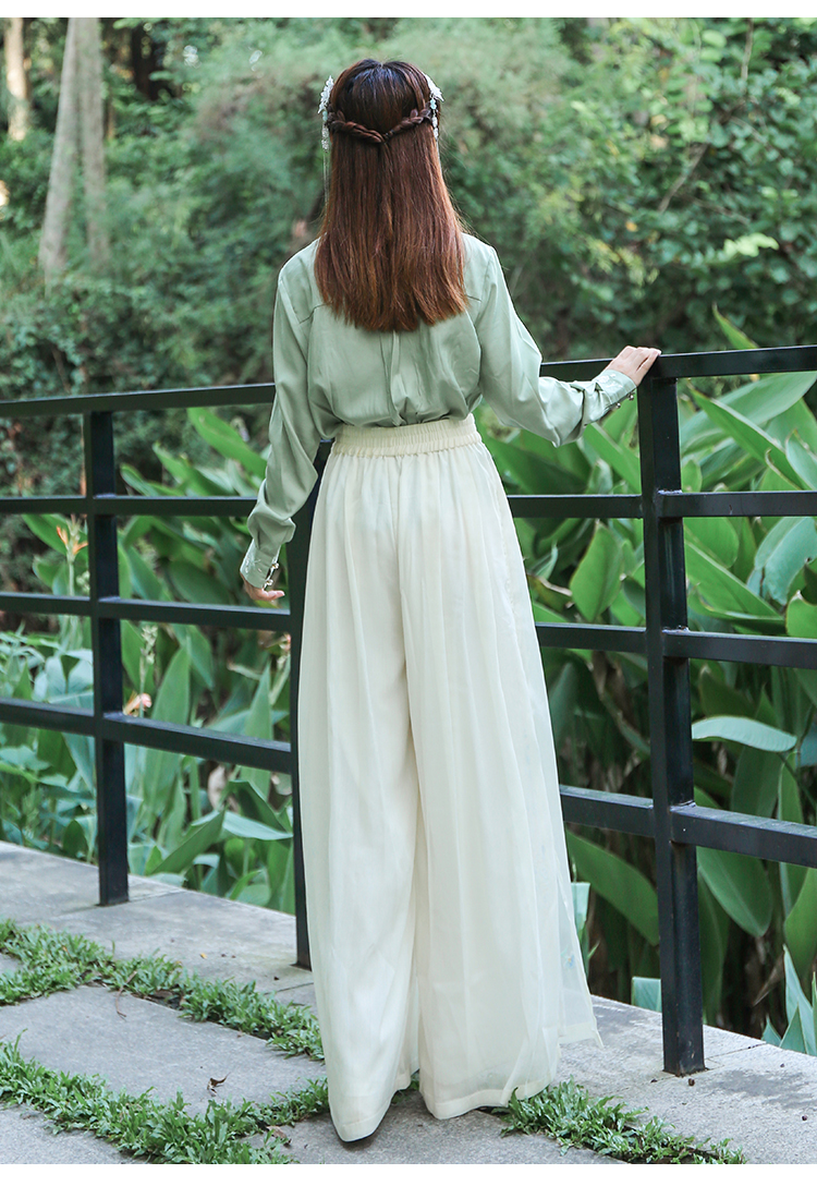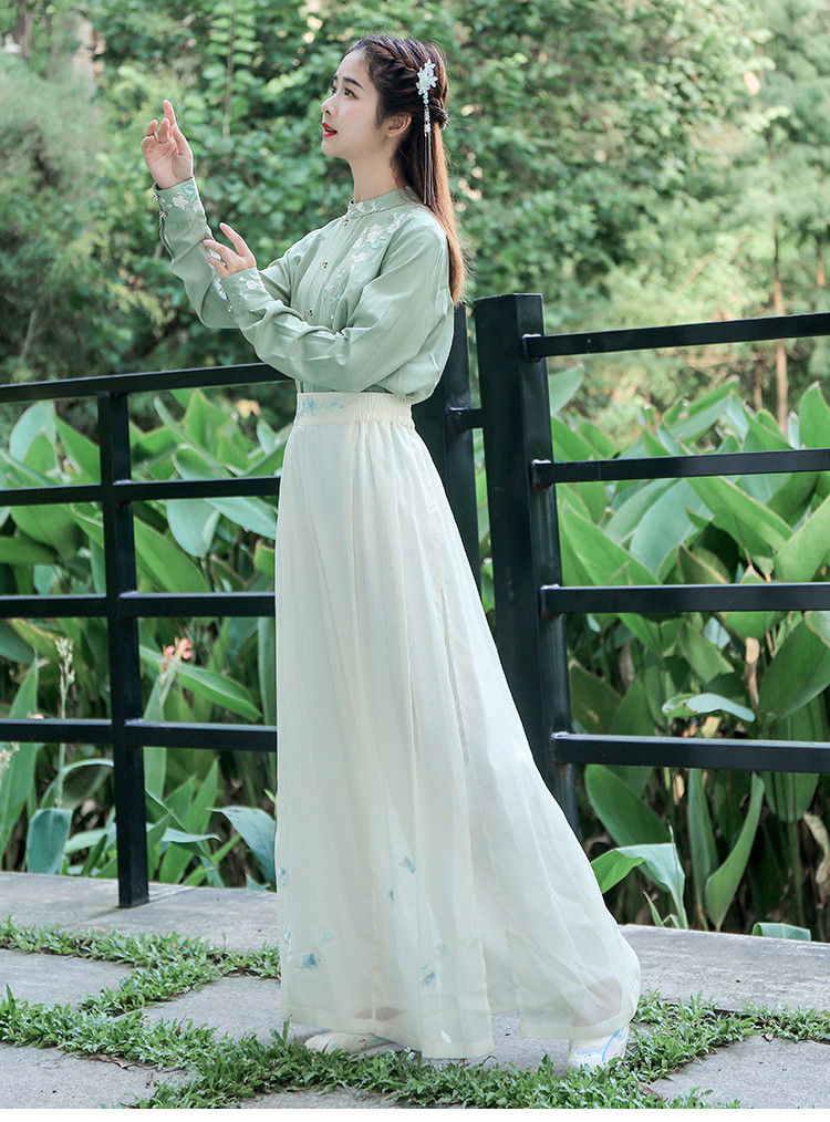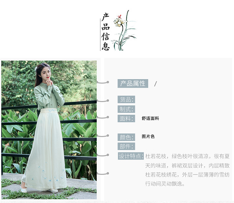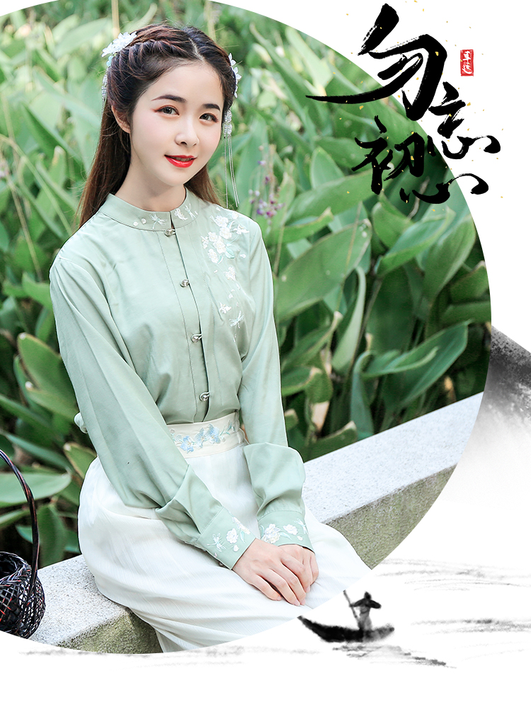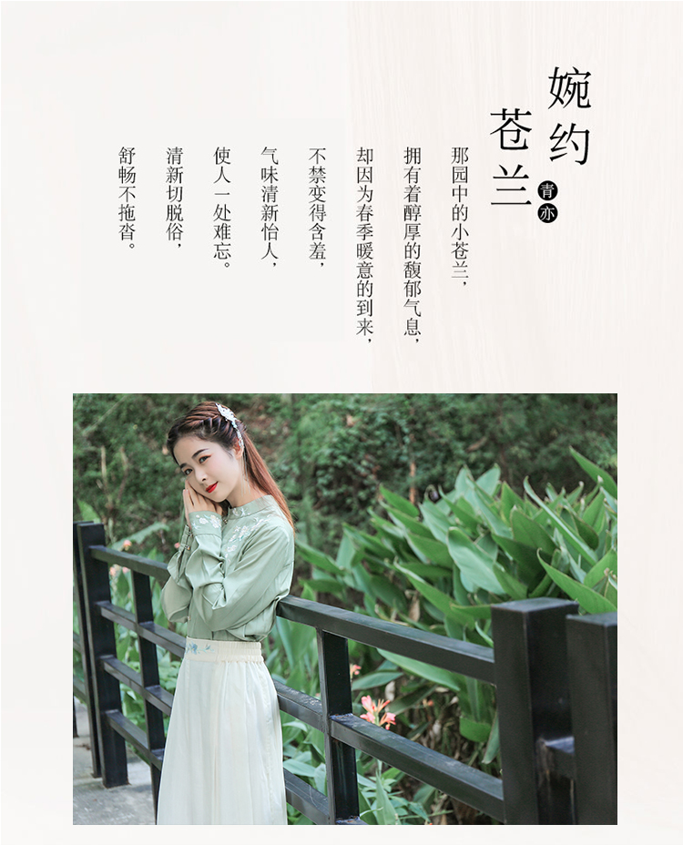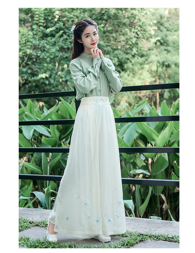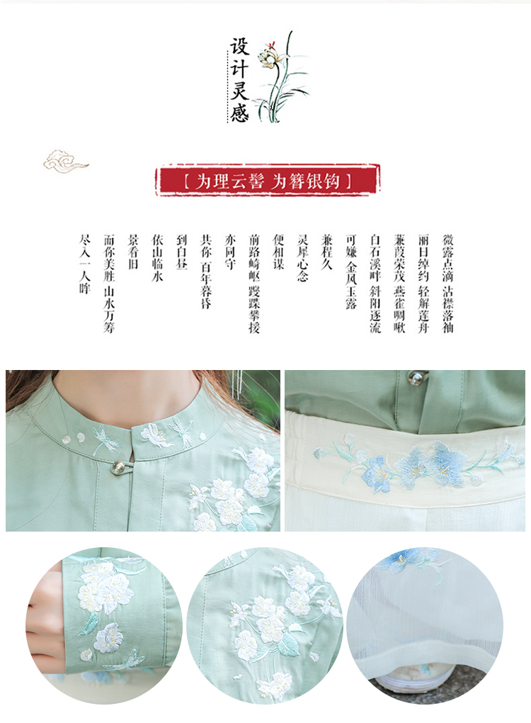 2019秋季新款文藝復古清新刺繡上衣立領漢服改良長袖襯衫女打底衫1入