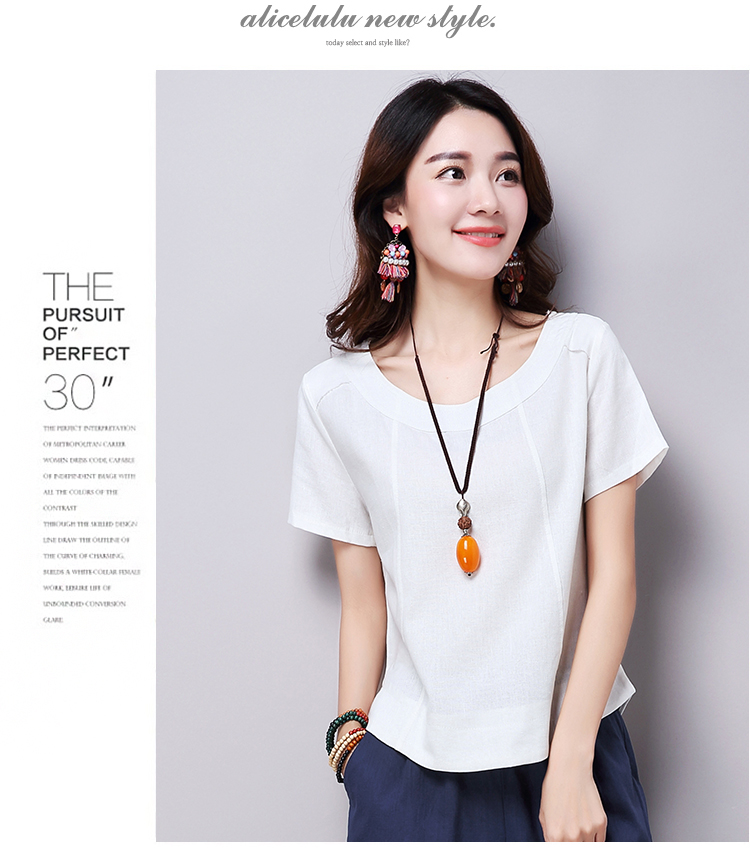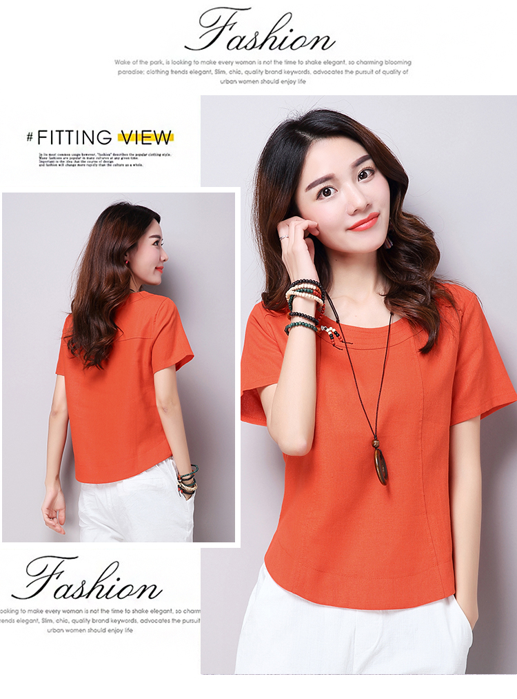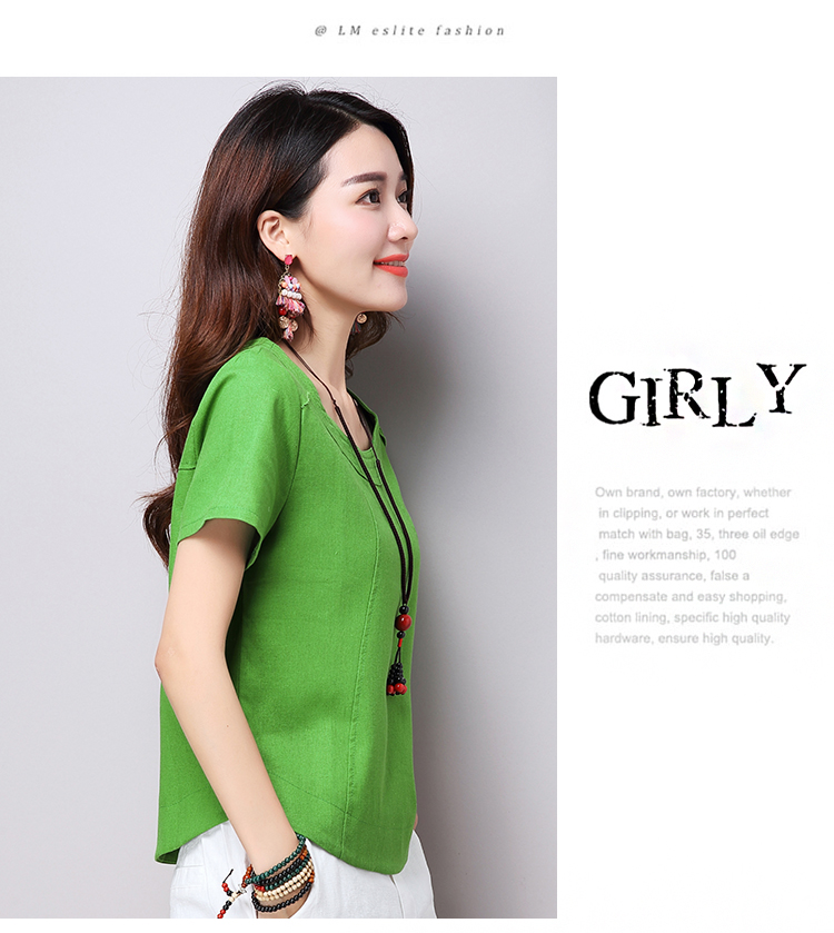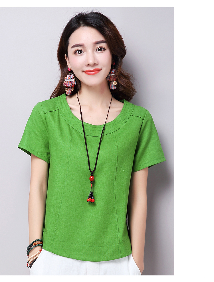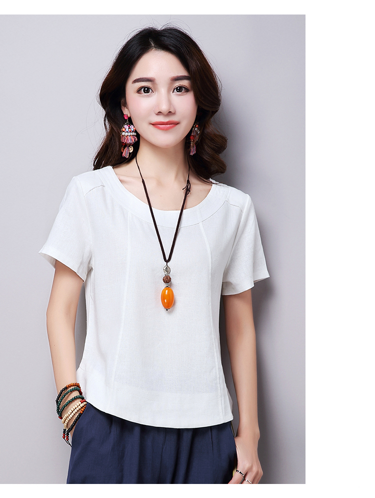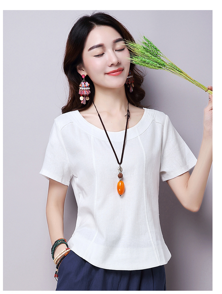 2019夏裝新款韓版文藝復古女裝棉麻短袖T恤 舒適透氣亞麻上衣顯瘦1入