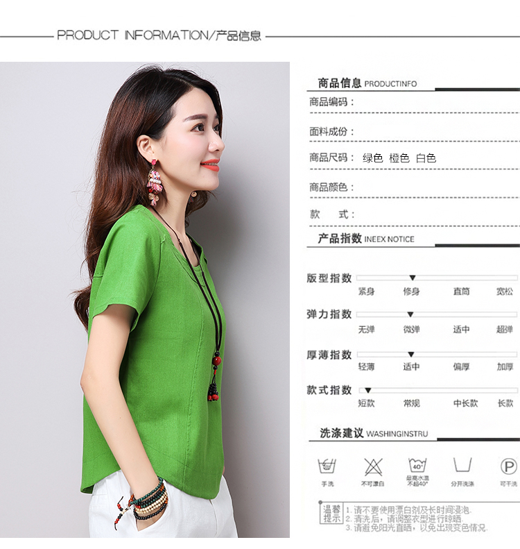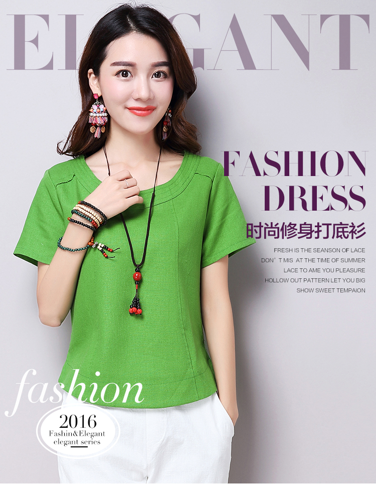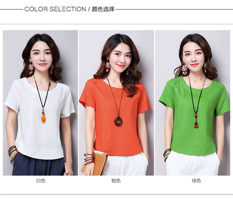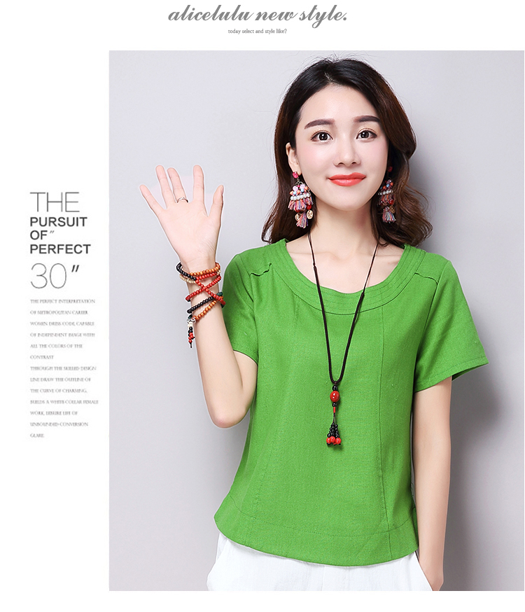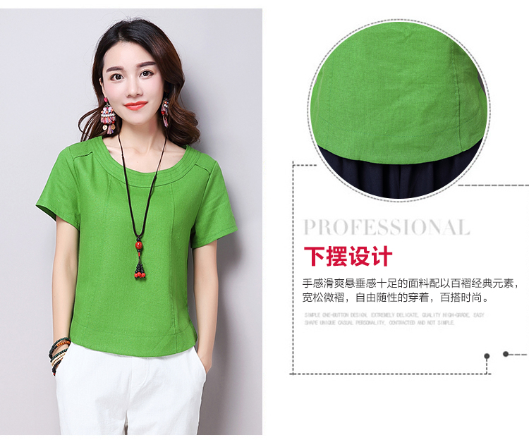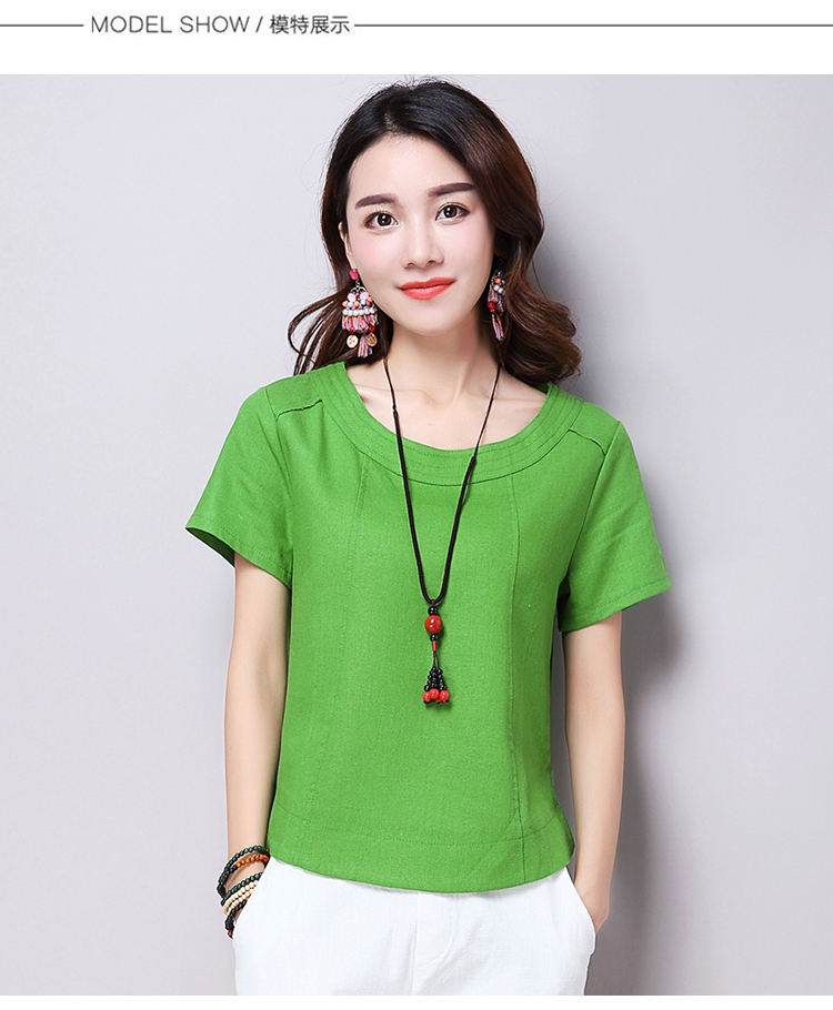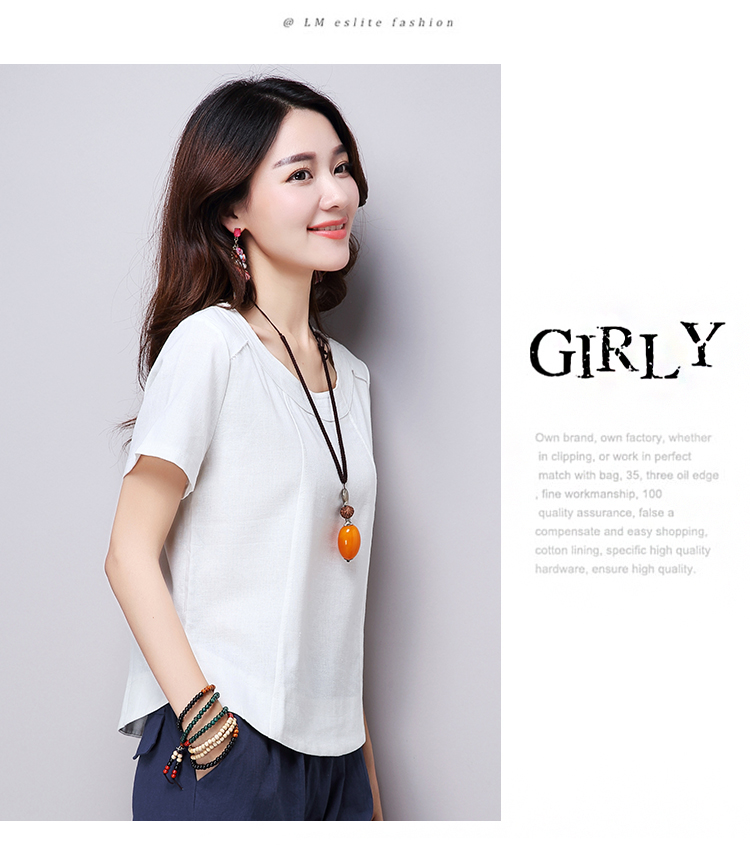 2019夏裝新款韓版文藝復古女裝棉麻短袖T恤 舒適透氣亞麻上衣顯瘦1入