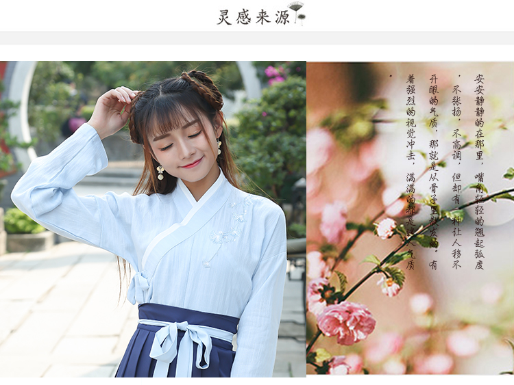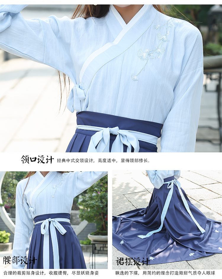 2019秋季新款中國風文藝復古日常漢服女繡花交領齊腰襦裙秋裝套裝1入