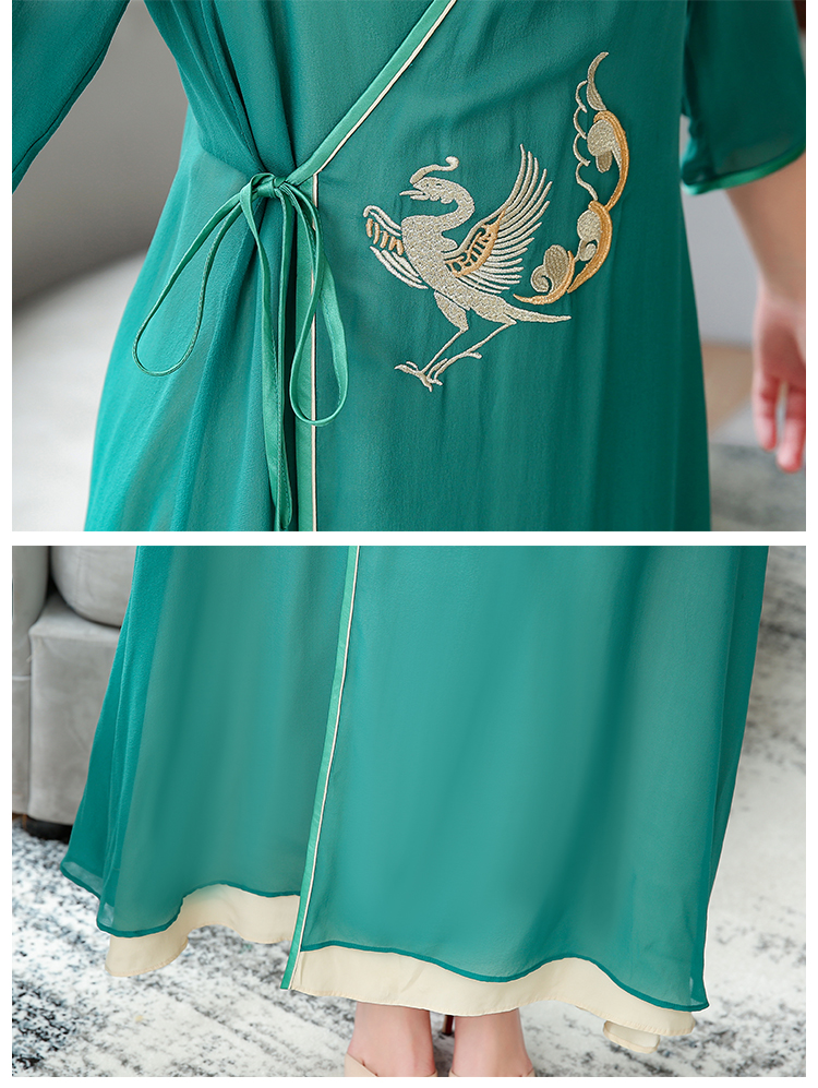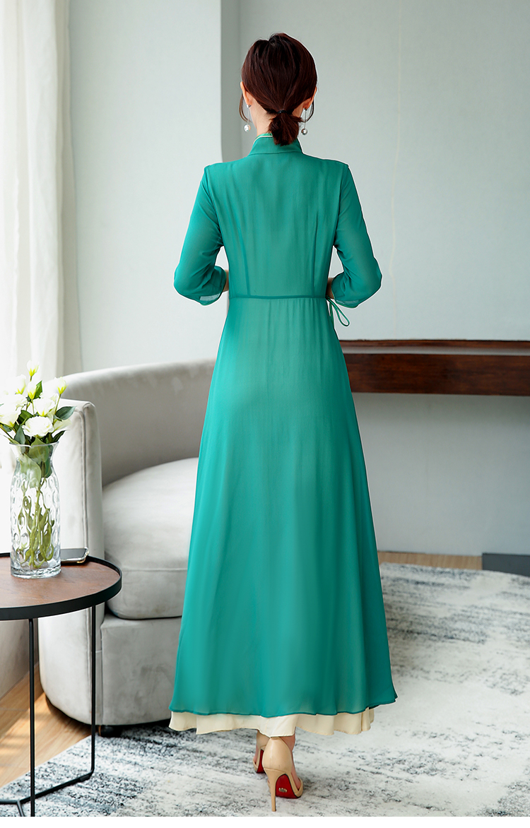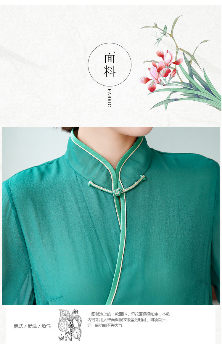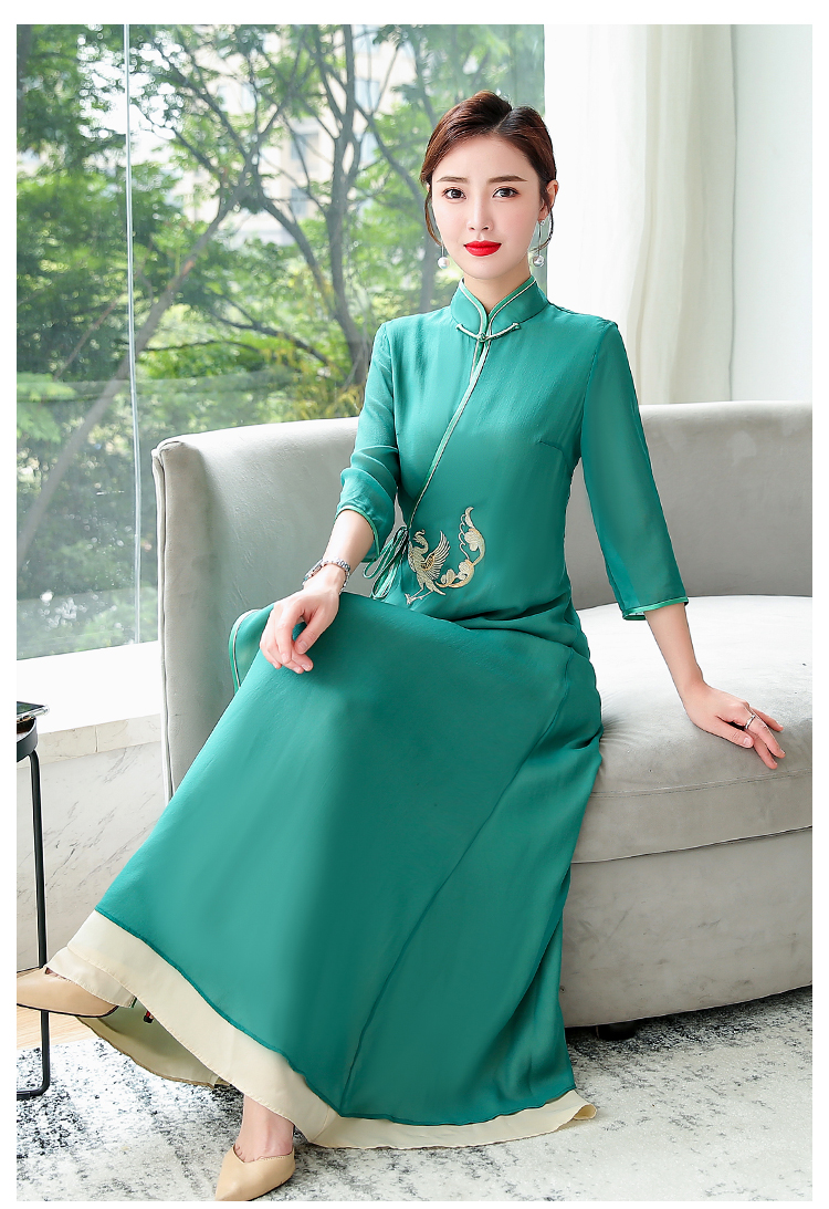 2019夏季新款中國風系帶長裙日常改良旗袍七分袖立領修身長連衣裙1入