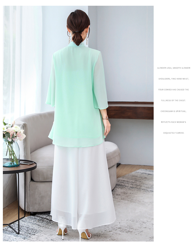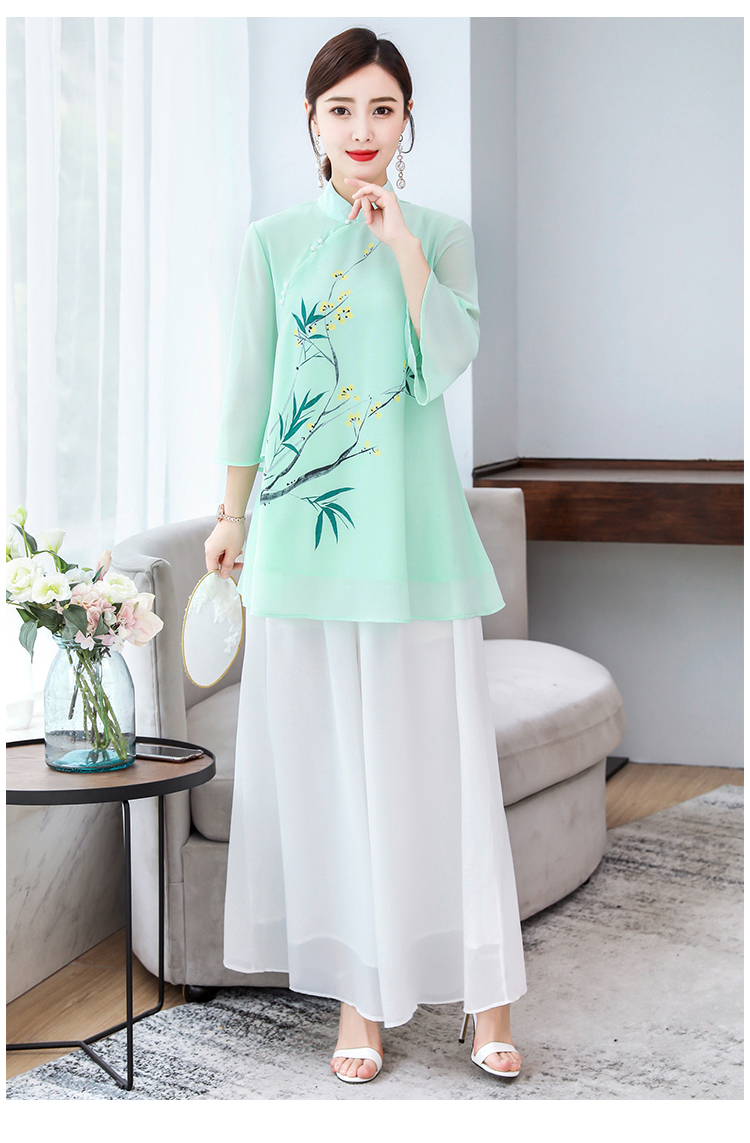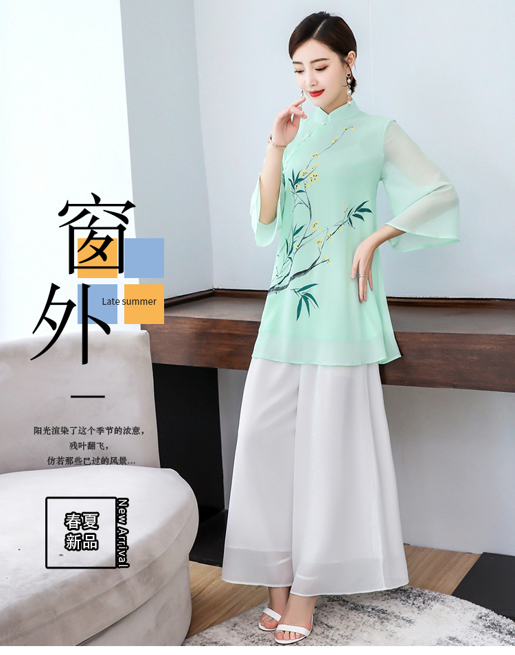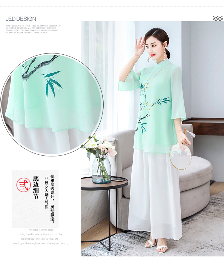 2019夏季新款中國風文藝復古優雅禪意茶藝服舞蹈演出瑜伽雪紡上衣1入