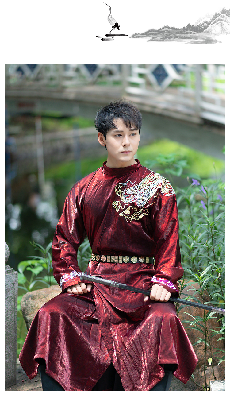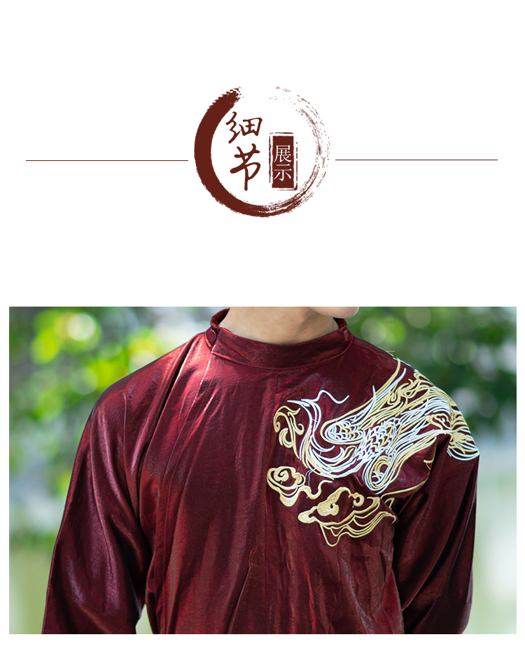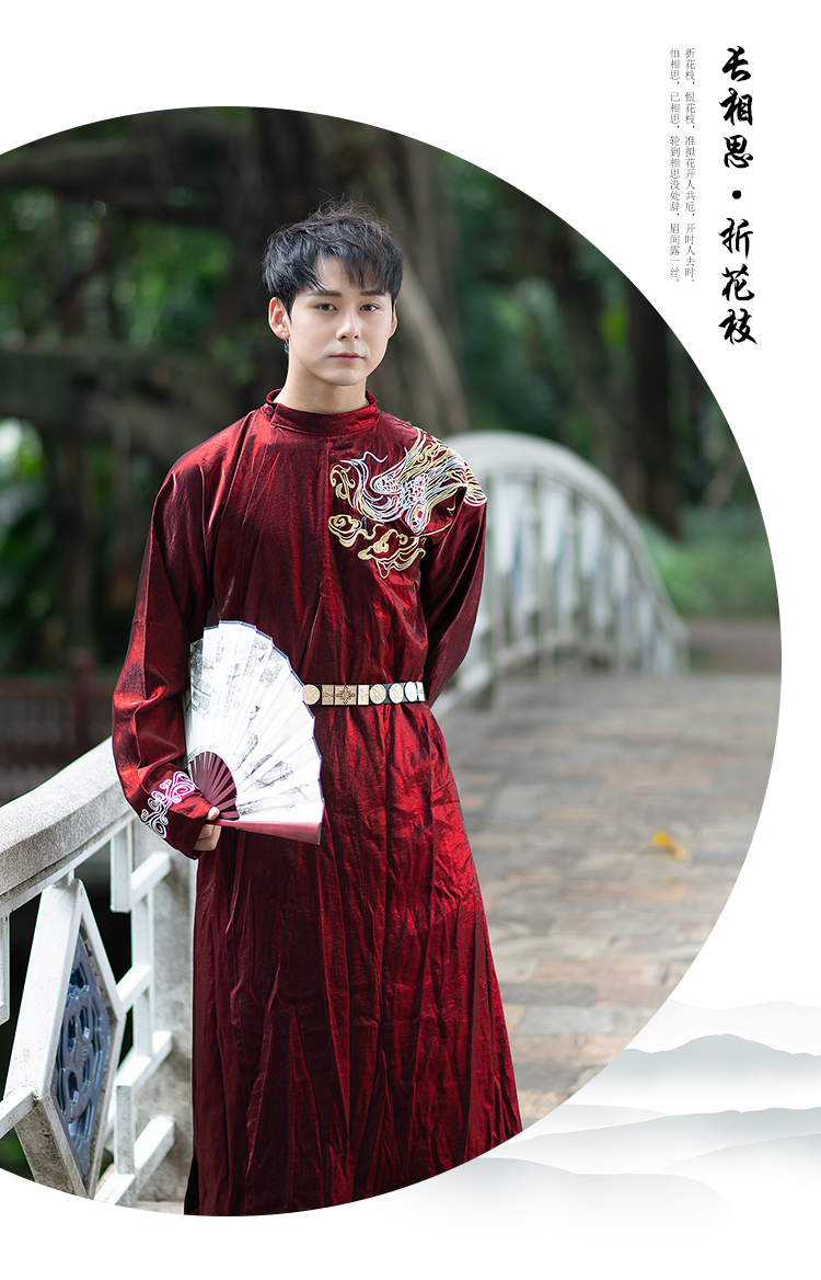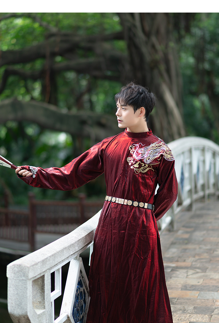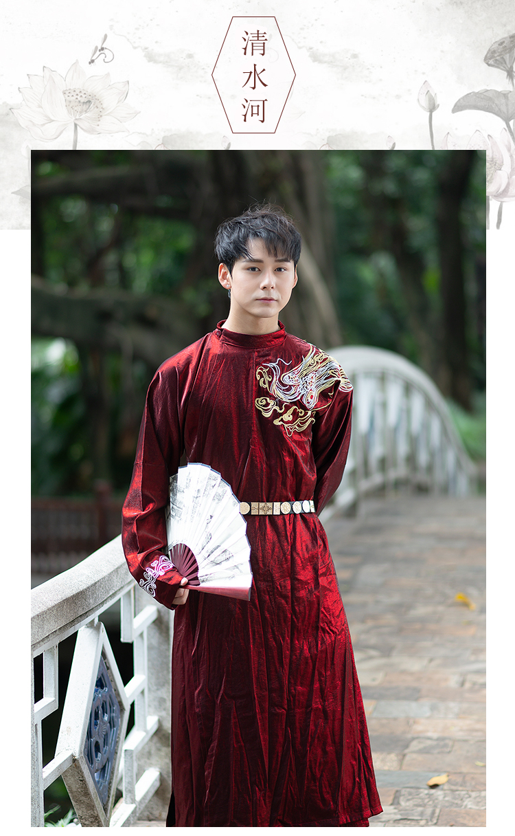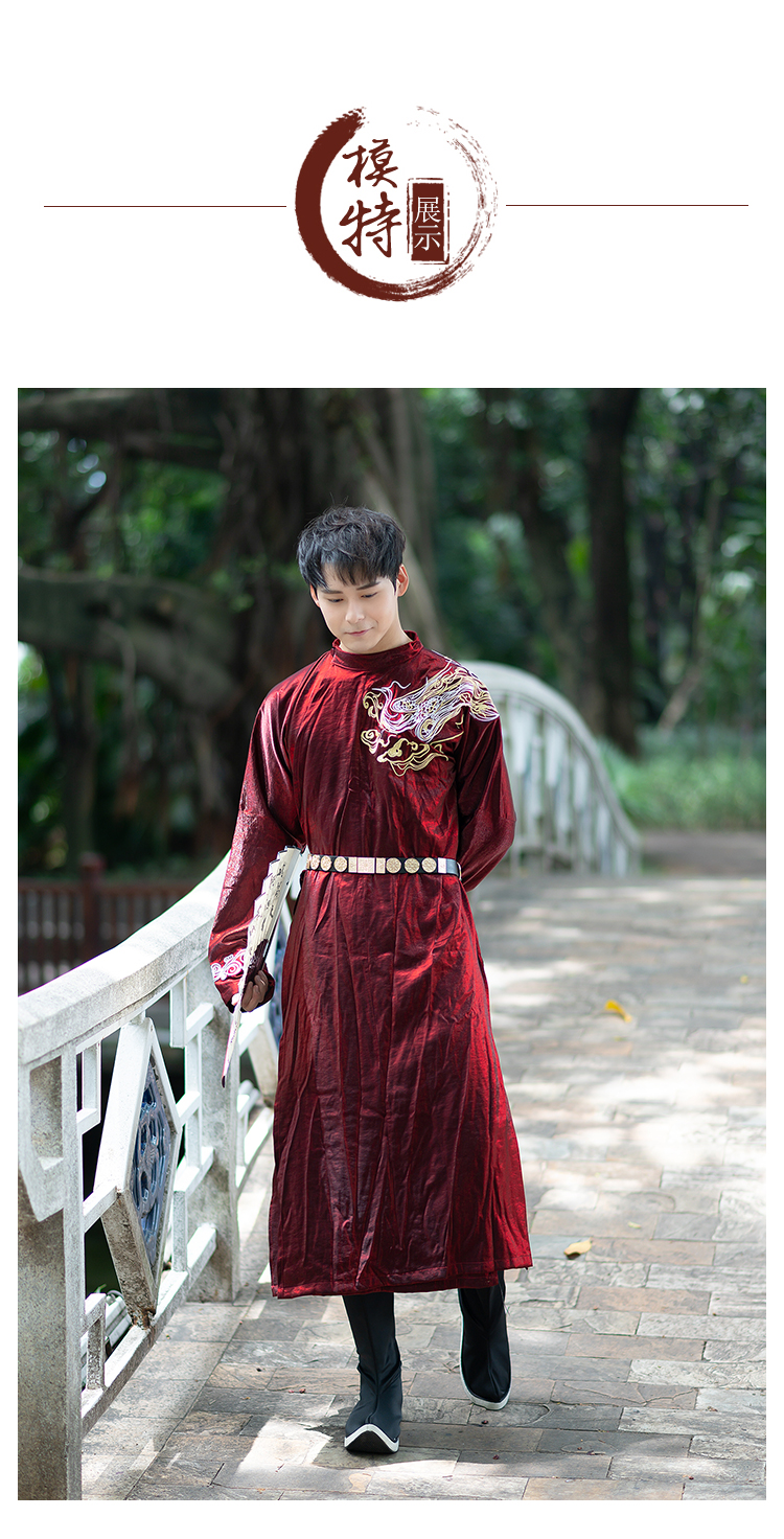 2019秋冬裝原創中國風男裝日常傳統漢元素復古刺繡圓領長袍表演服1入