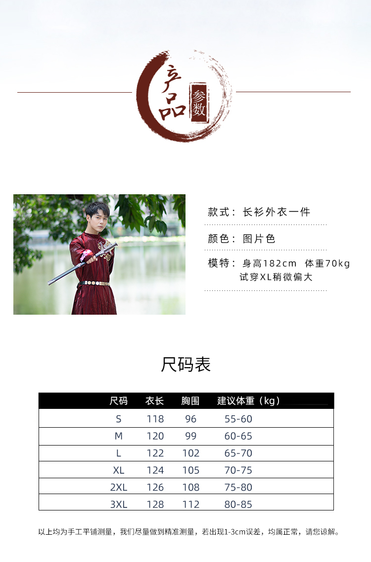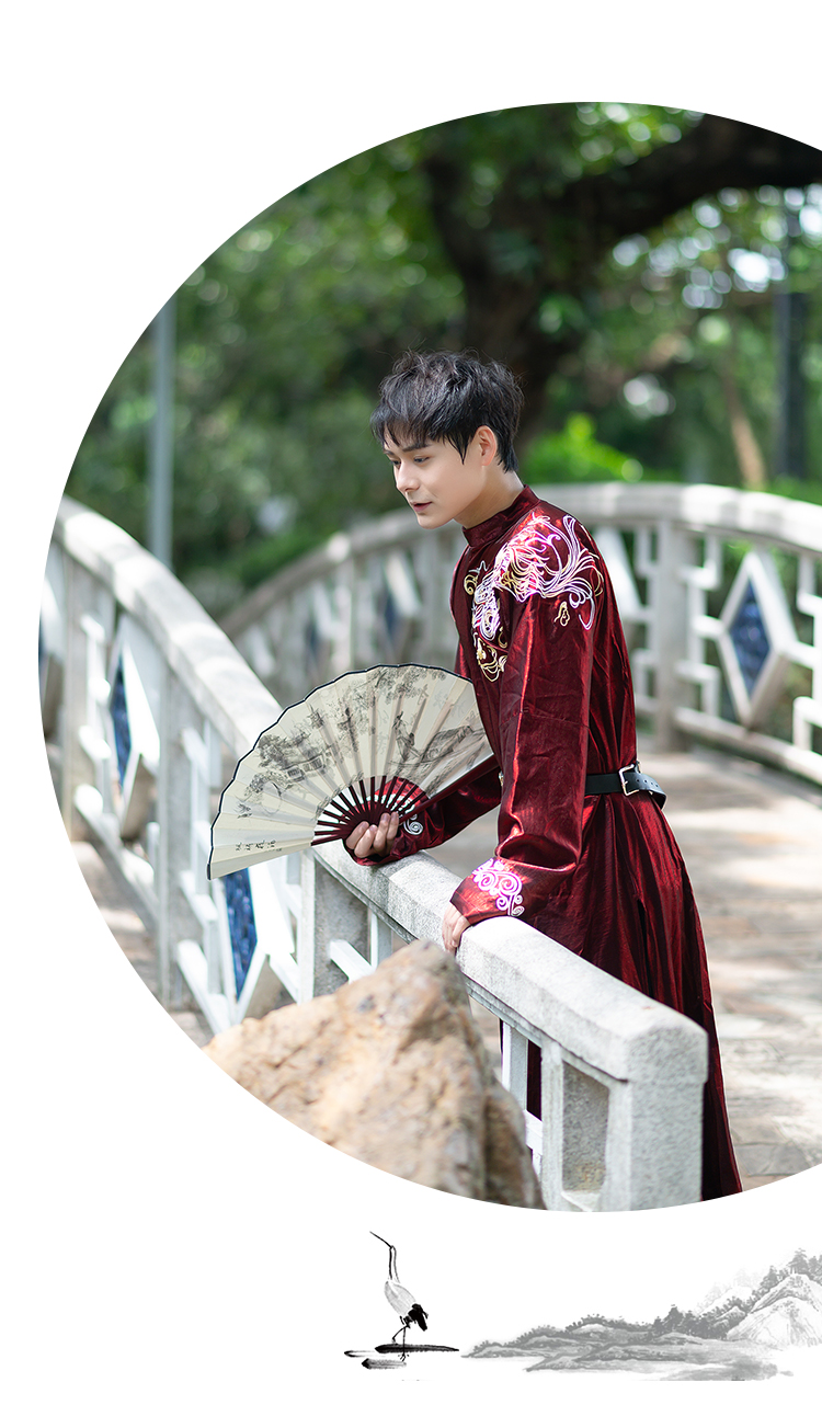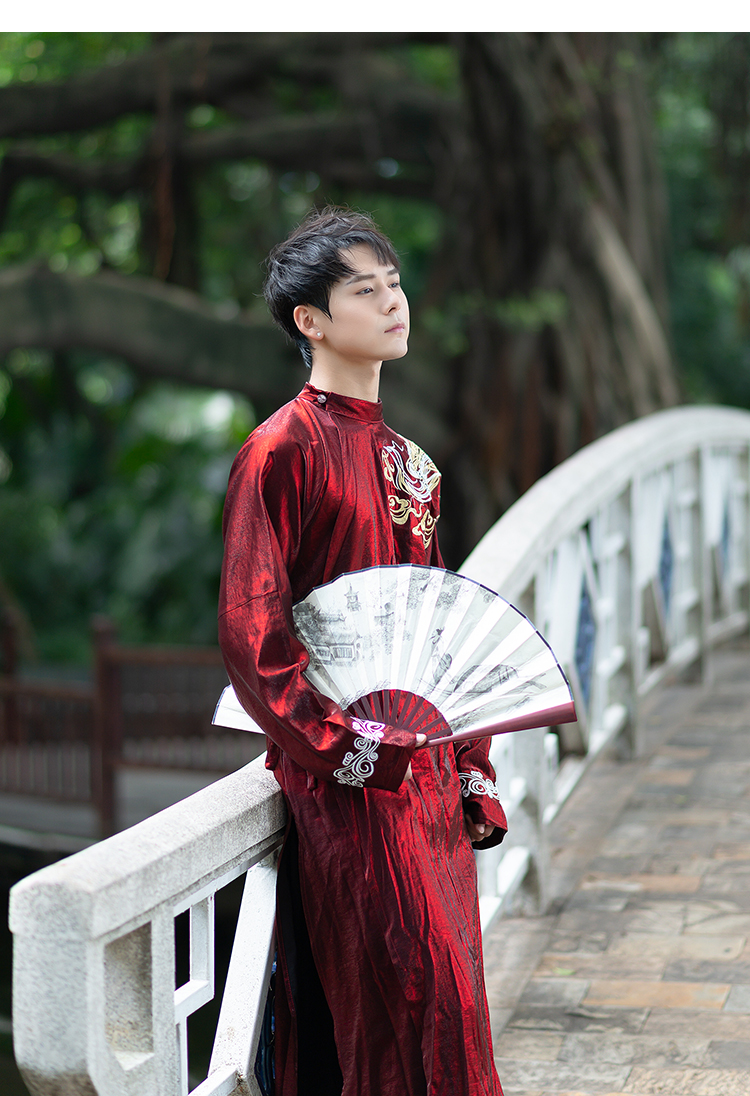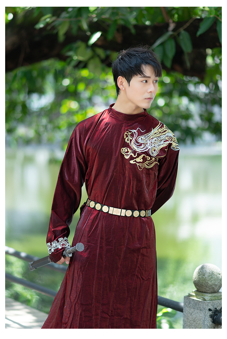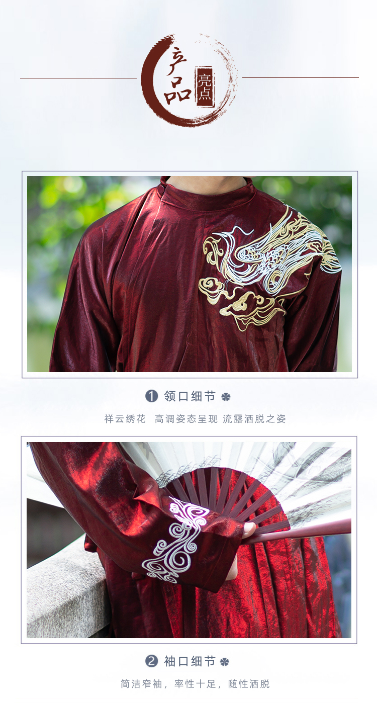 2019秋冬裝原創中國風男裝日常傳統漢元素復古刺繡圓領長袍表演服1入