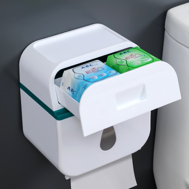 防水強力貼衛生間紙巾盒廁所紙巾盒廁紙盒創意卷紙筒衛生紙架1入