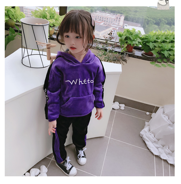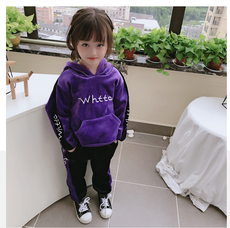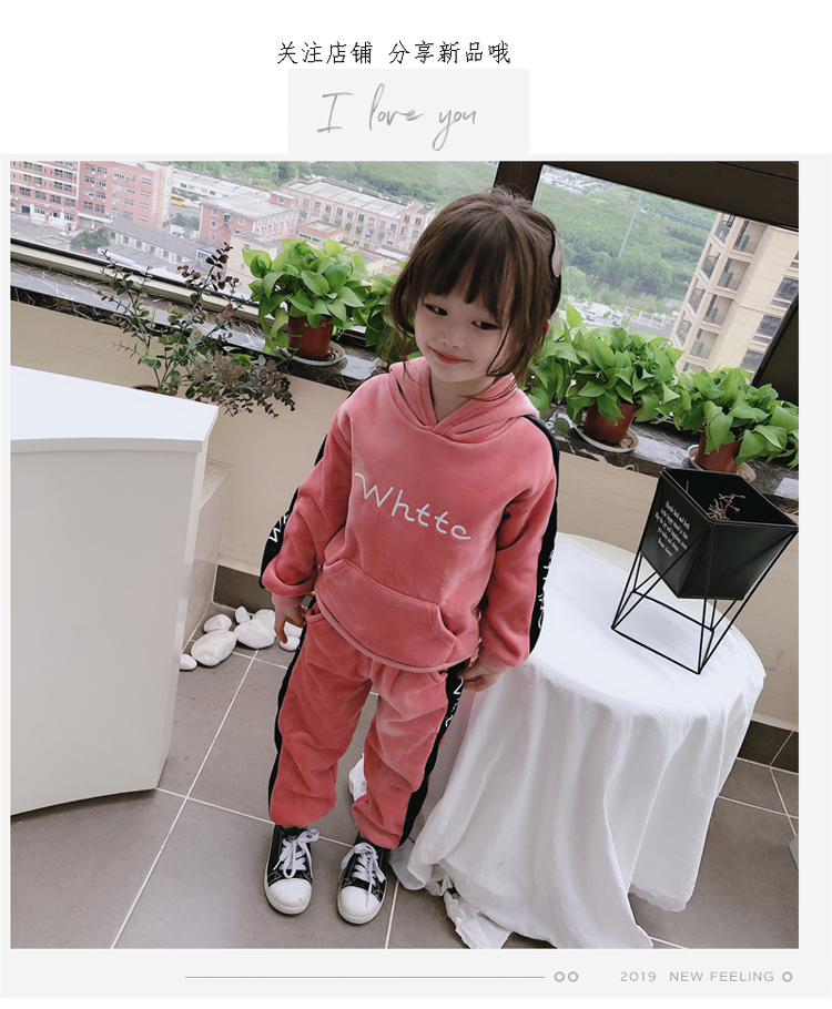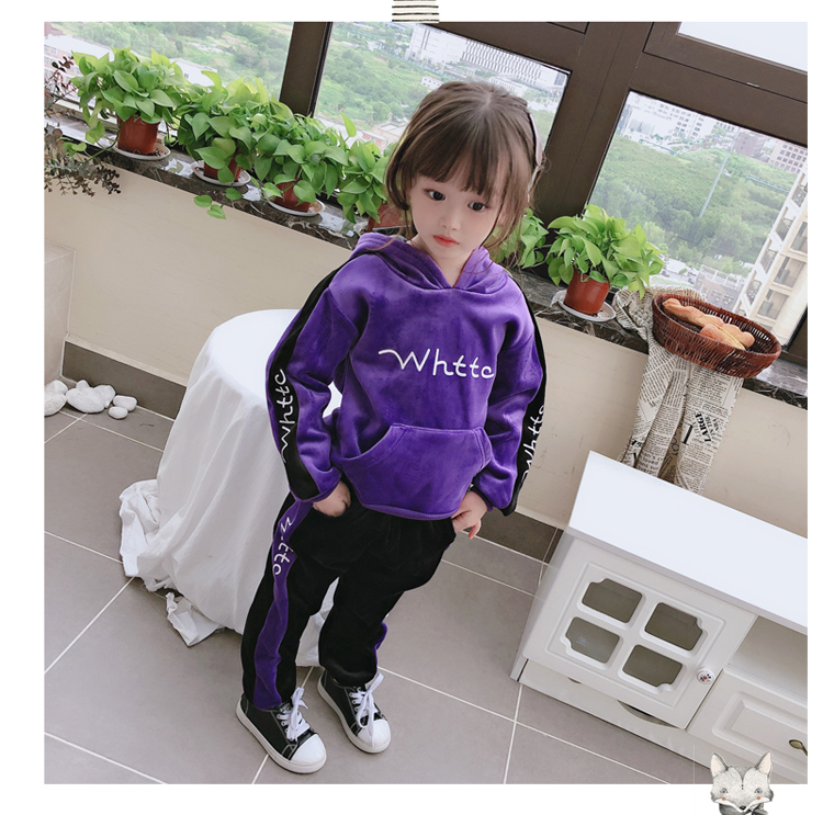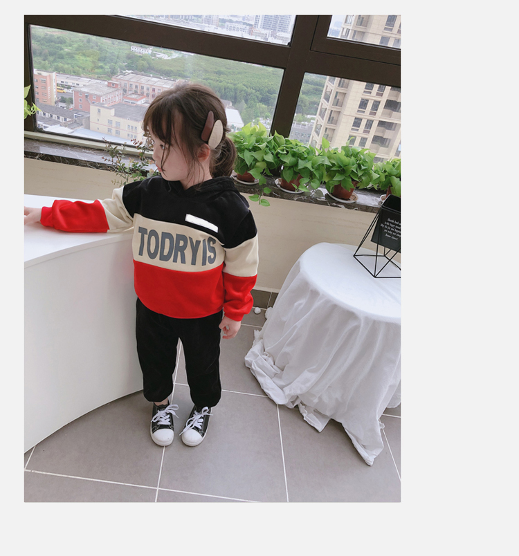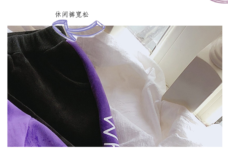 2019春秋季新款 中小童舒適字母圖案上衣+寬松帥氣休閑褲兩件套1入