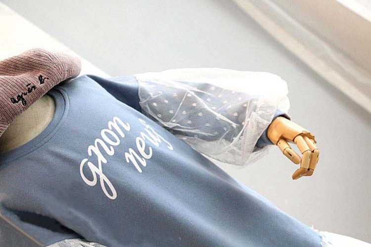 2018女童春秋季女寶寶甜美字母連衣裙 寬松紗網拼接燈籠袖衛衣裙1入