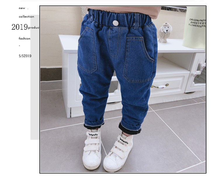 2019兒童秋冬季新款純色百搭潮流長褲 中小童加絨寬松帥氣牛仔褲1入