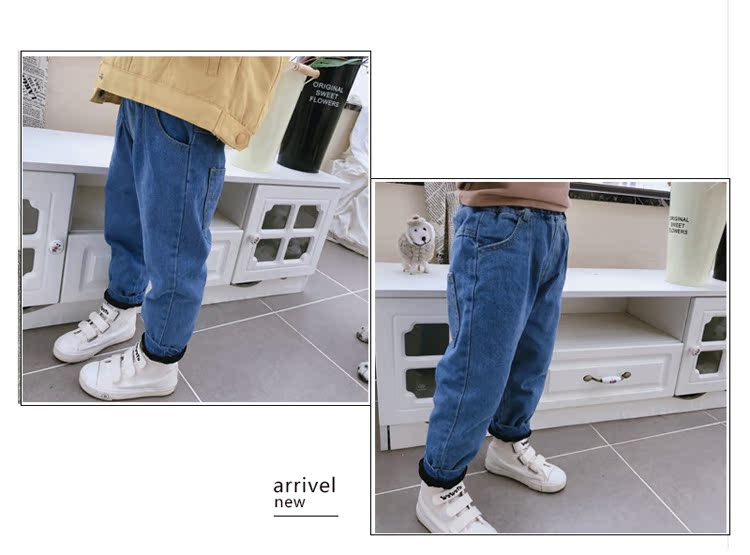 2019中小童秋冬季新款寬松加絨加厚蘿卜褲 兒童百搭休閑牛仔褲潮1入