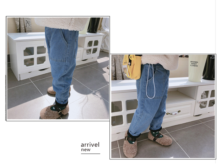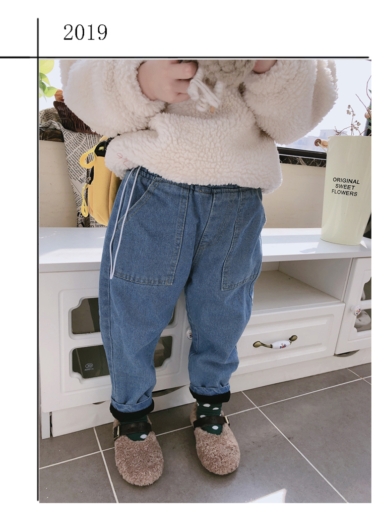 2019冬季新款 男女童加絨加厚蘿卜褲 中小童純色松緊腰牛仔褲潮1入