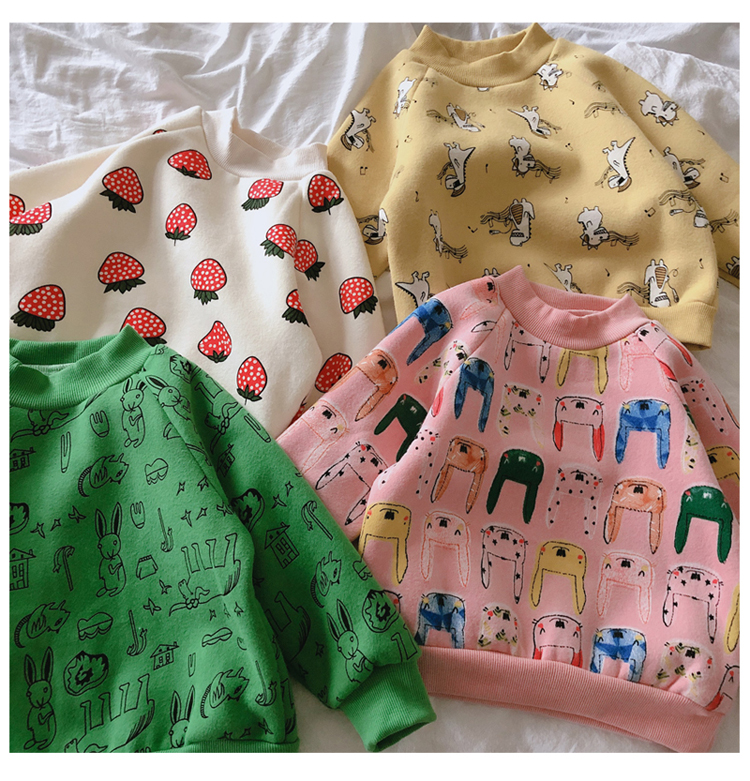 2019冬季新款 中小童俏皮可愛草莓印花上衣 女童小清新套頭衛衣1入