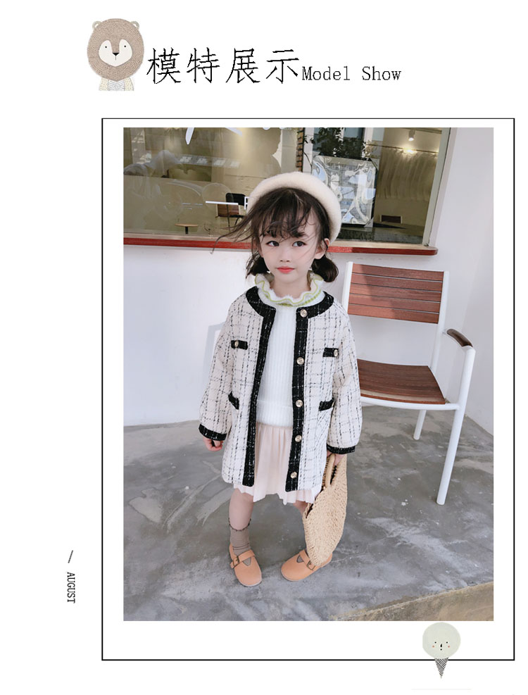 2019冬季新款 中小童氣質甜美中長款上衣 女童俏皮可愛撞色外套1入