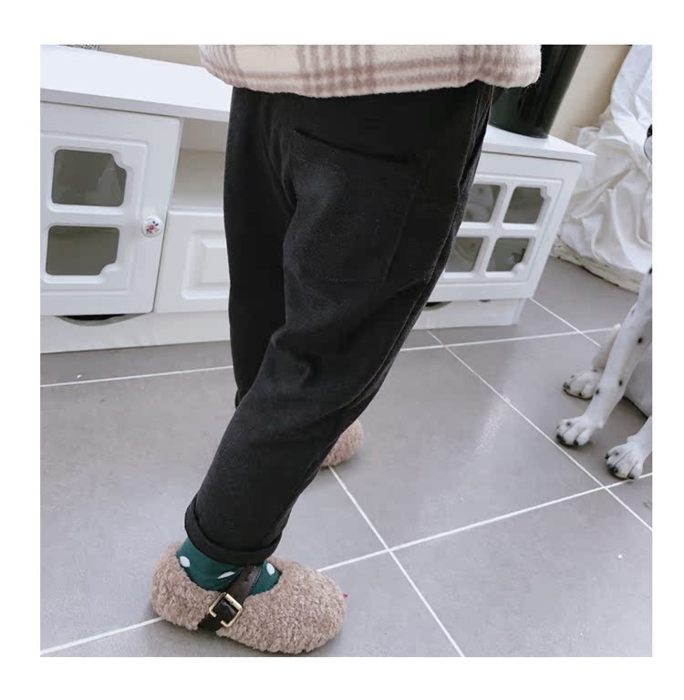 2019冬季新款 中小童松緊褲腰休閑褲 男女童帥氣純色加絨加厚褲子1入