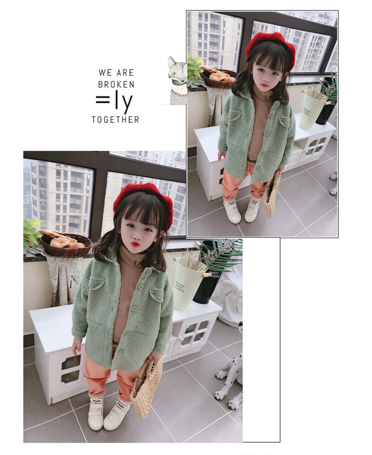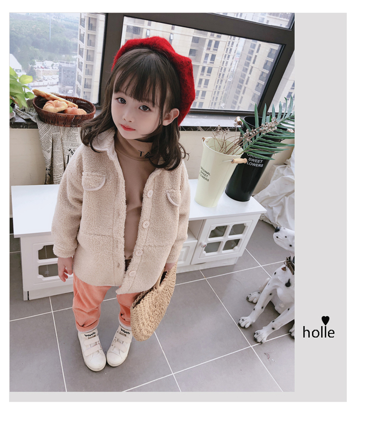 2019冬季新款 中小童氣質甜美中長款上衣 女童俏皮寬松純色外套1入