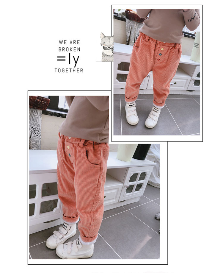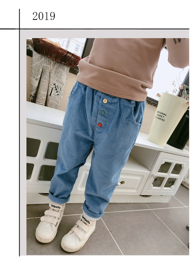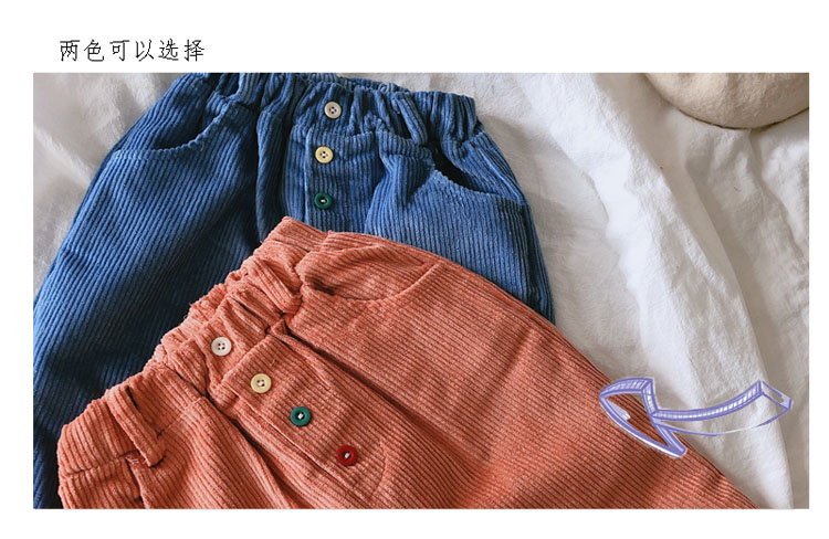 2019冬季新款 兒童可愛糖果色紐扣休閑褲 男女童寬松百搭牛仔褲1入
