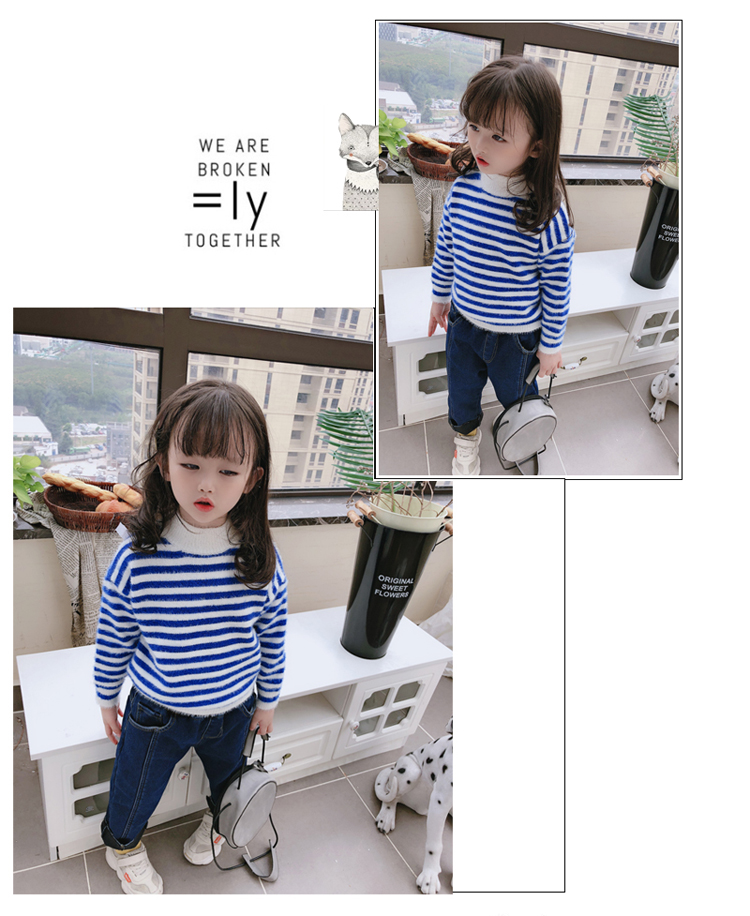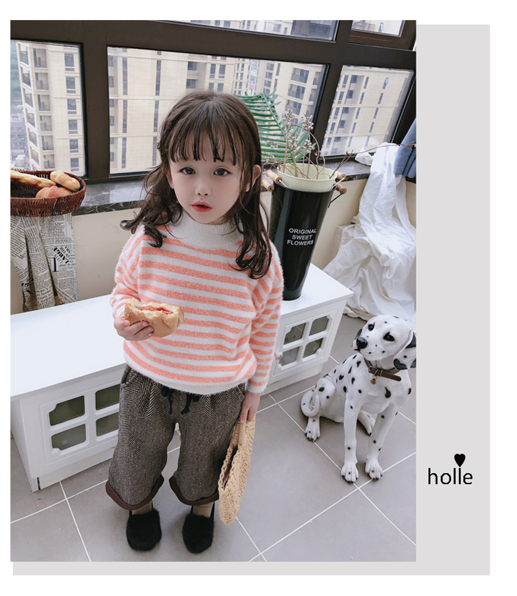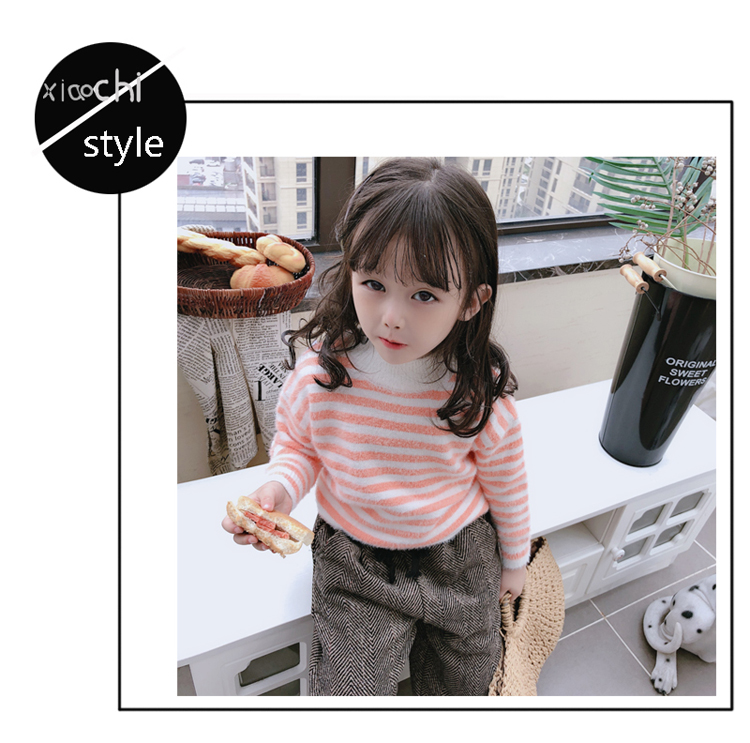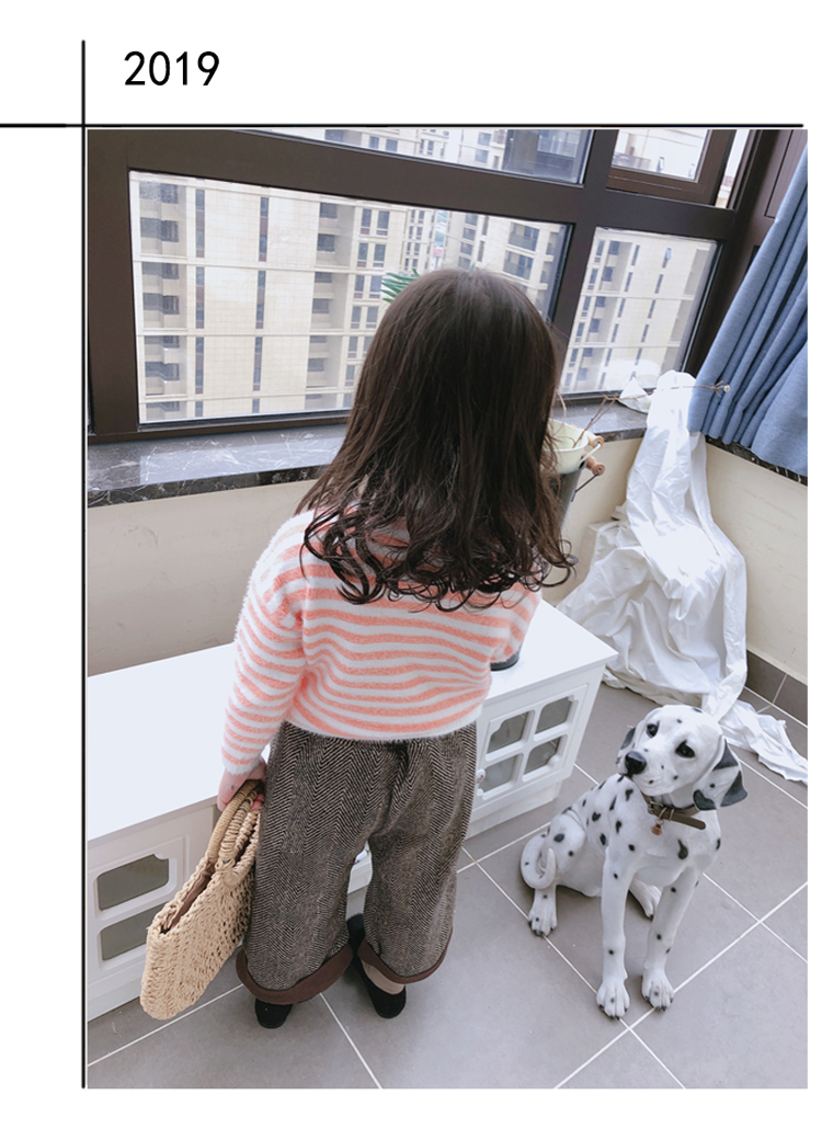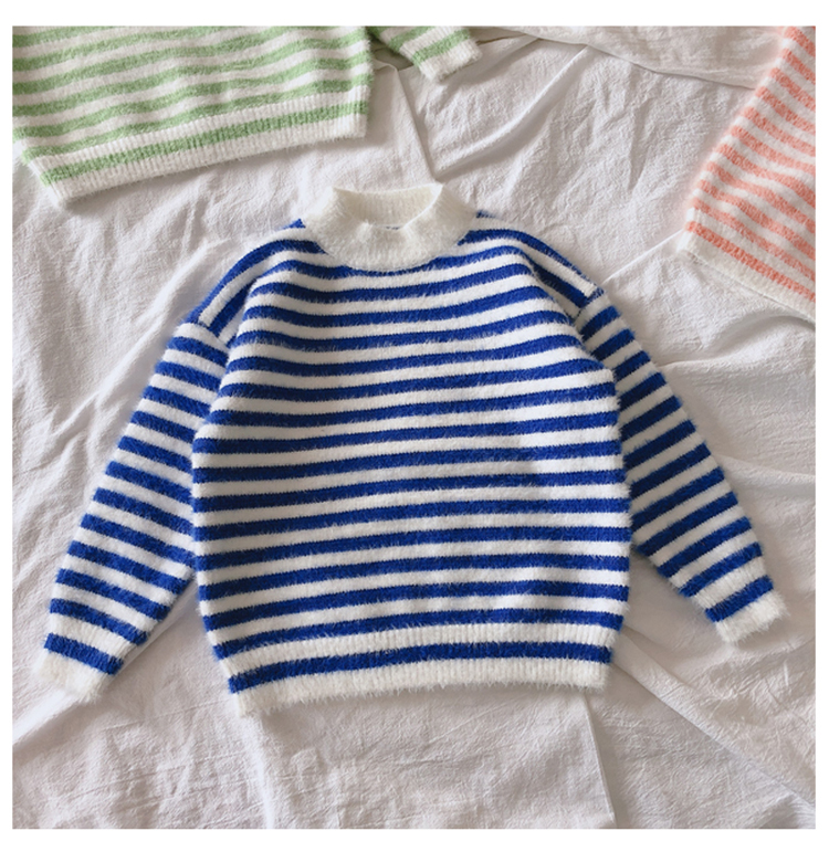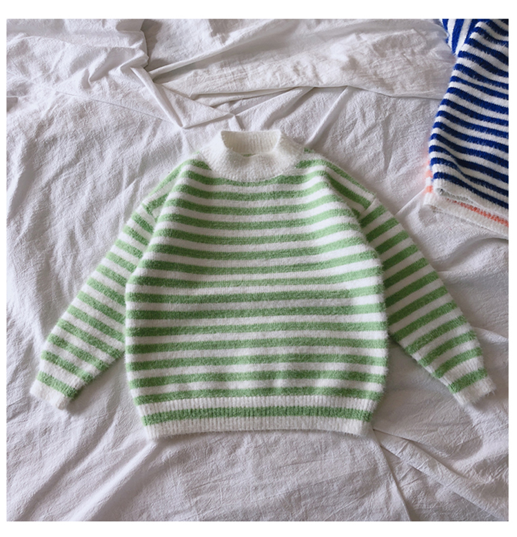 2019秋冬季新款 兒童俏皮可愛條紋毛衣 男女童寬松舒適套頭針織衫1入