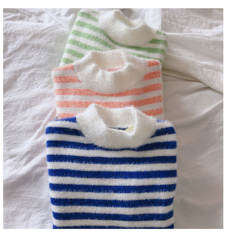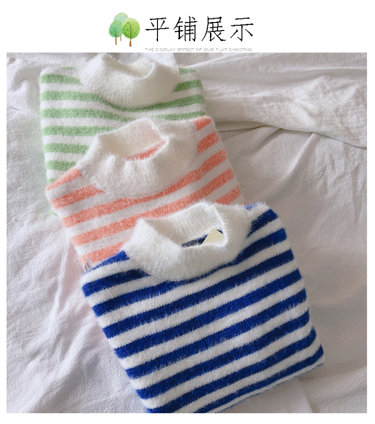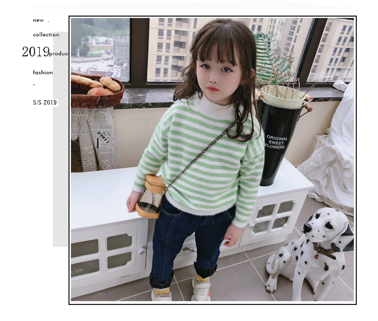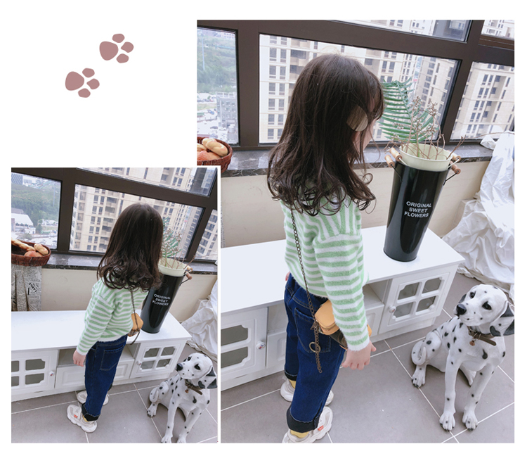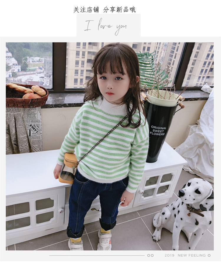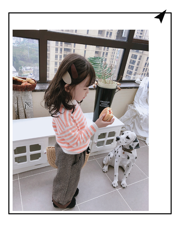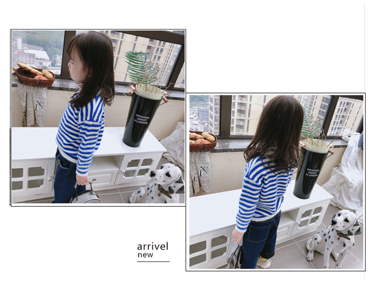 2019秋冬季新款 兒童俏皮可愛條紋毛衣 男女童寬松舒適套頭針織衫1入