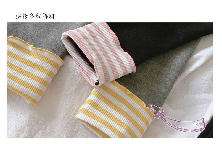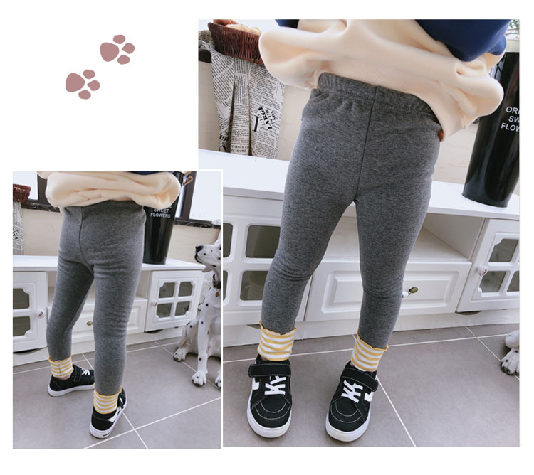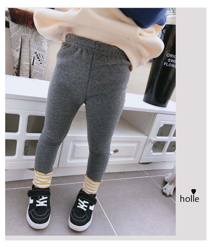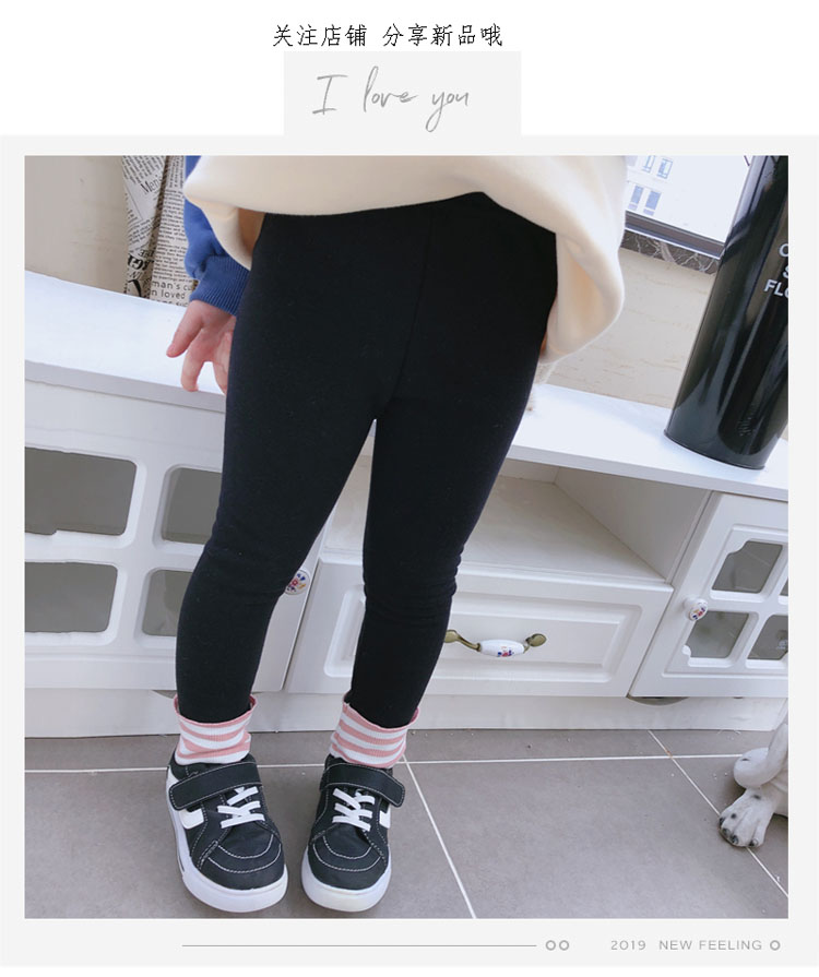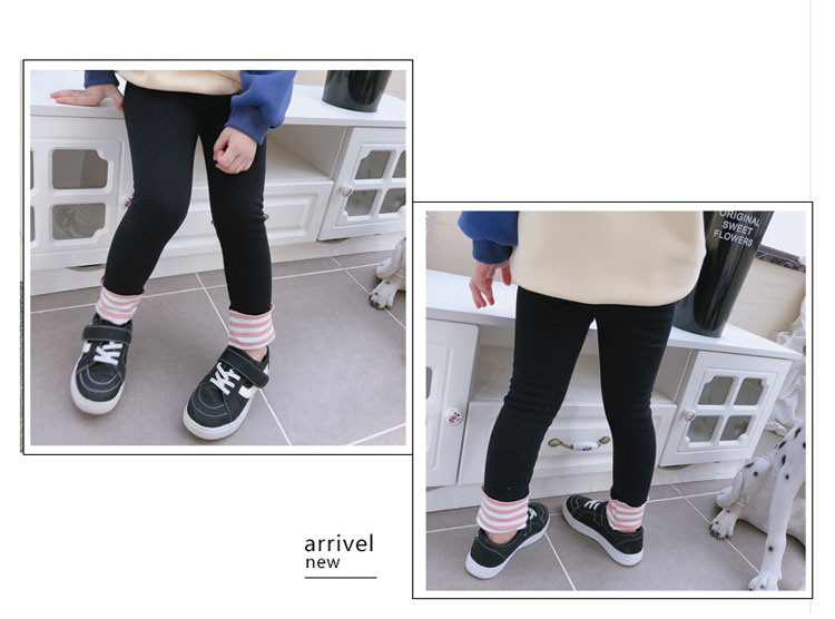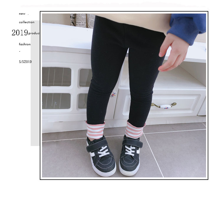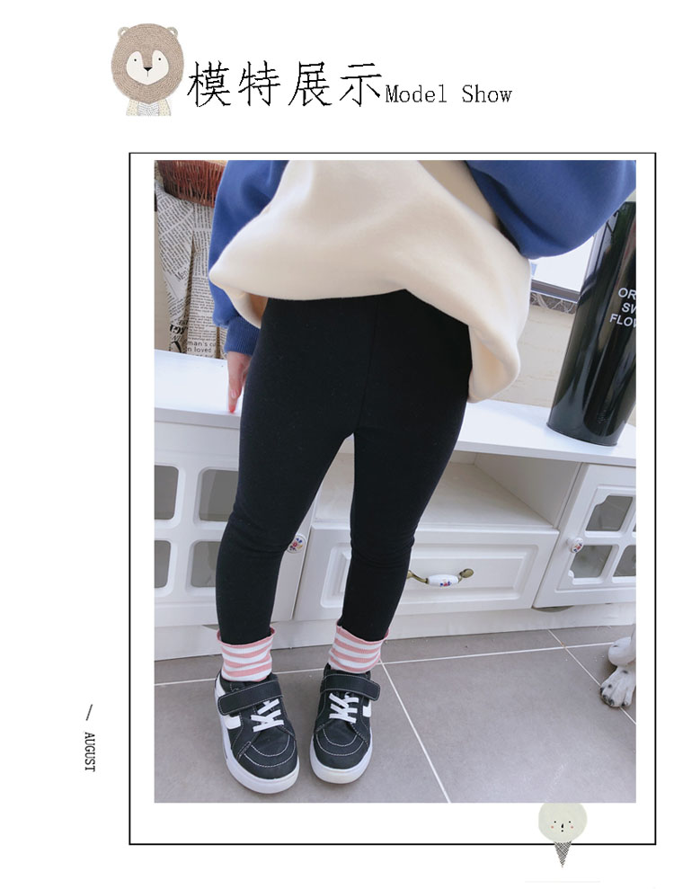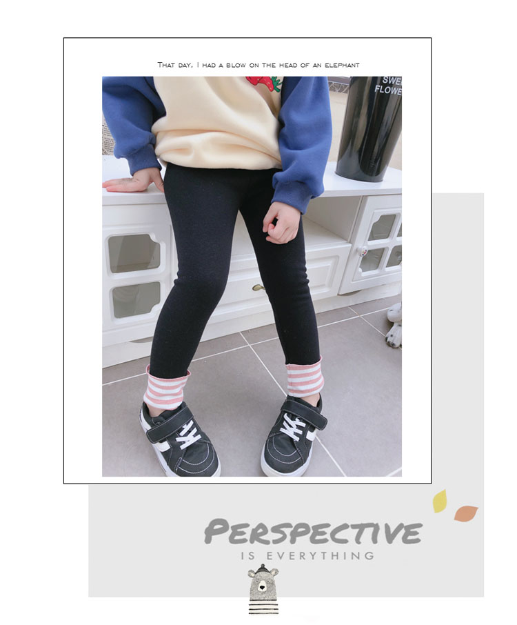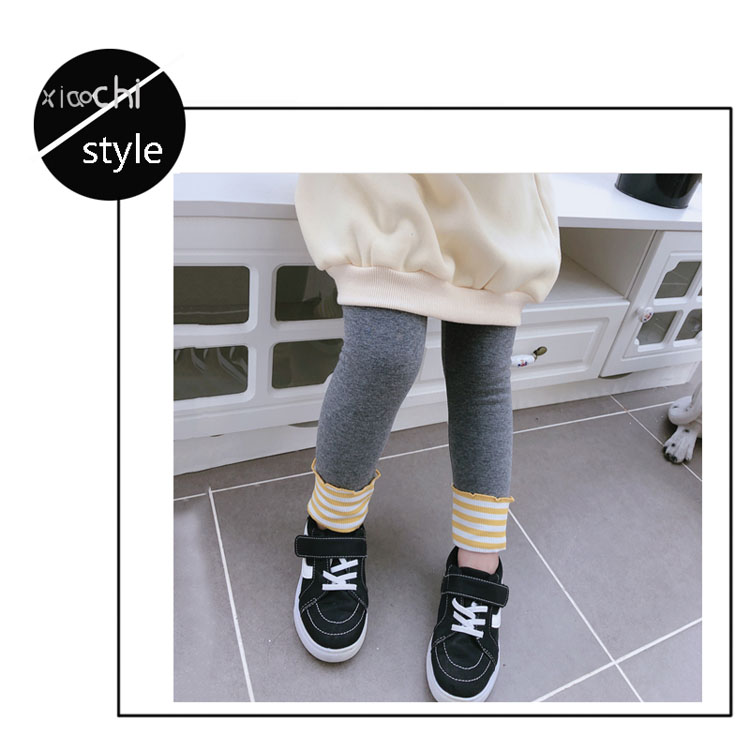 2019秋冬季新款中小童修身舒適百搭打底褲 女童褲邊條紋拼接長褲1入