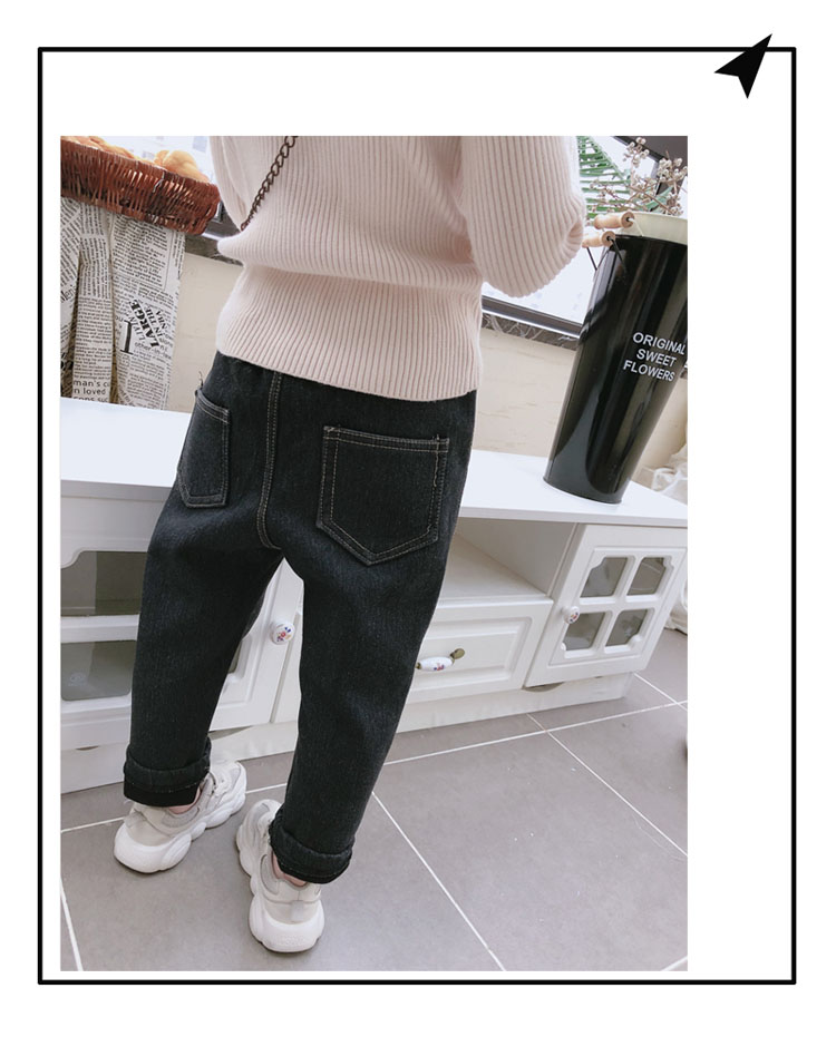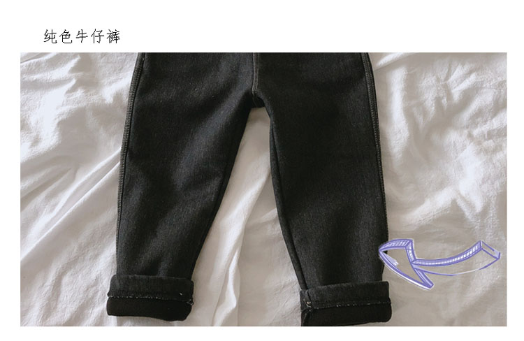 2019中小童冬季新款加絨加厚保暖長褲 男女童純色舒適百搭牛仔褲1入