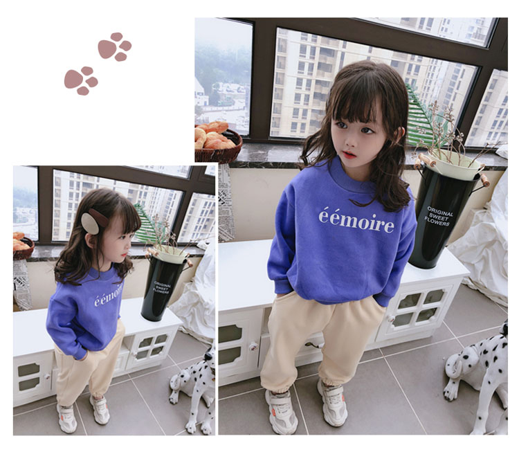 2019冬季新款 中小童寬松圓領套頭上衣 男女童舒適百搭加絨衛衣1入
