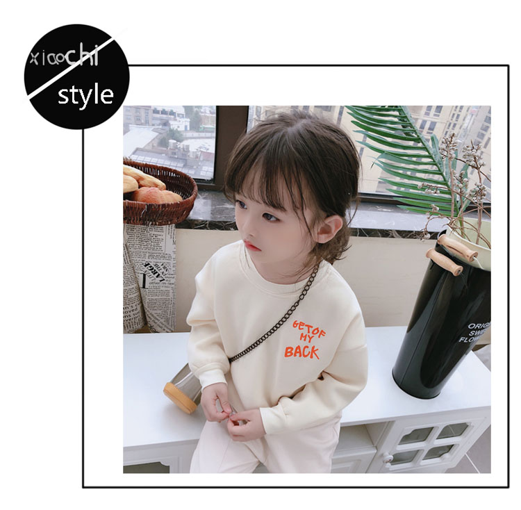 2019秋冬季新款中小童彩色印花字母上衣 男女童圓領套頭百搭衛衣1入