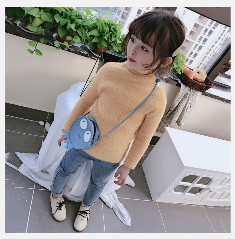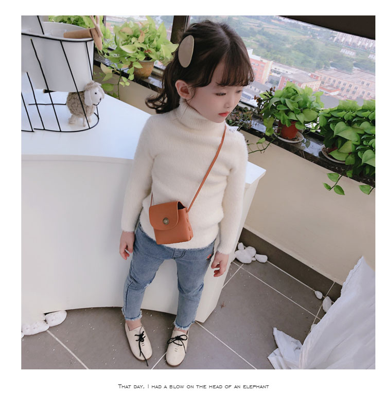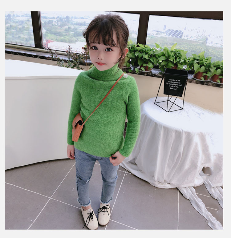 2019冬季中小童兒童水貂絨針織衫上衣 女童寶寶糖果色高領毛衣1入