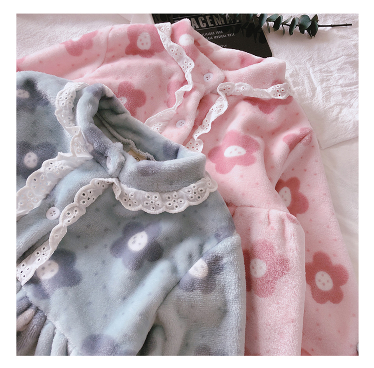 2019冬季女童保暖家居服套裝 中小童甜美花邊睡衣兩件套送發箍1入