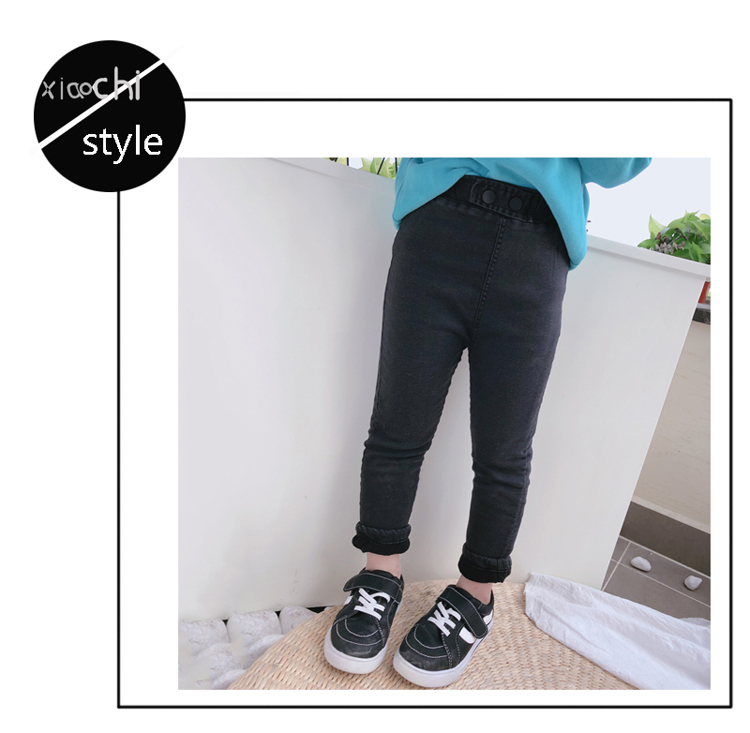 2019冬季新款 男女童舒適百搭純色牛仔褲 中小童加絨加厚小腳褲1入