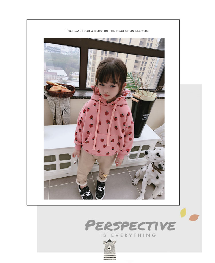 2019兒童冬季新款小清新花邊連帽套頭衫 女童加絨加厚印花衛衣潮1入