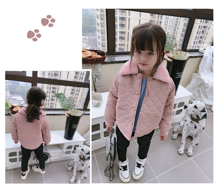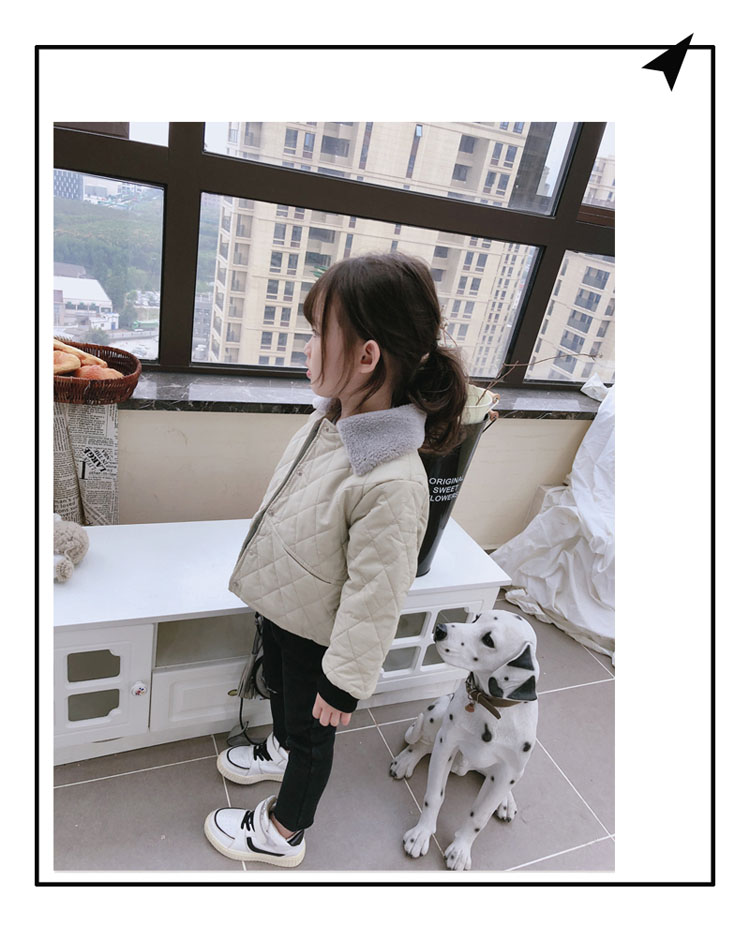 2019冬季新款 兒童帥氣毛絨翻領外套 女童簡約大氣加絨加厚上衣1入