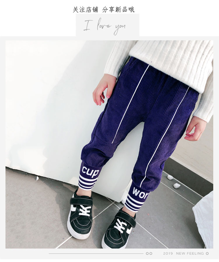 2019秋冬季新款中小童寬松百搭腳口字母長褲 兒童帥氣外穿蘿卜褲1入