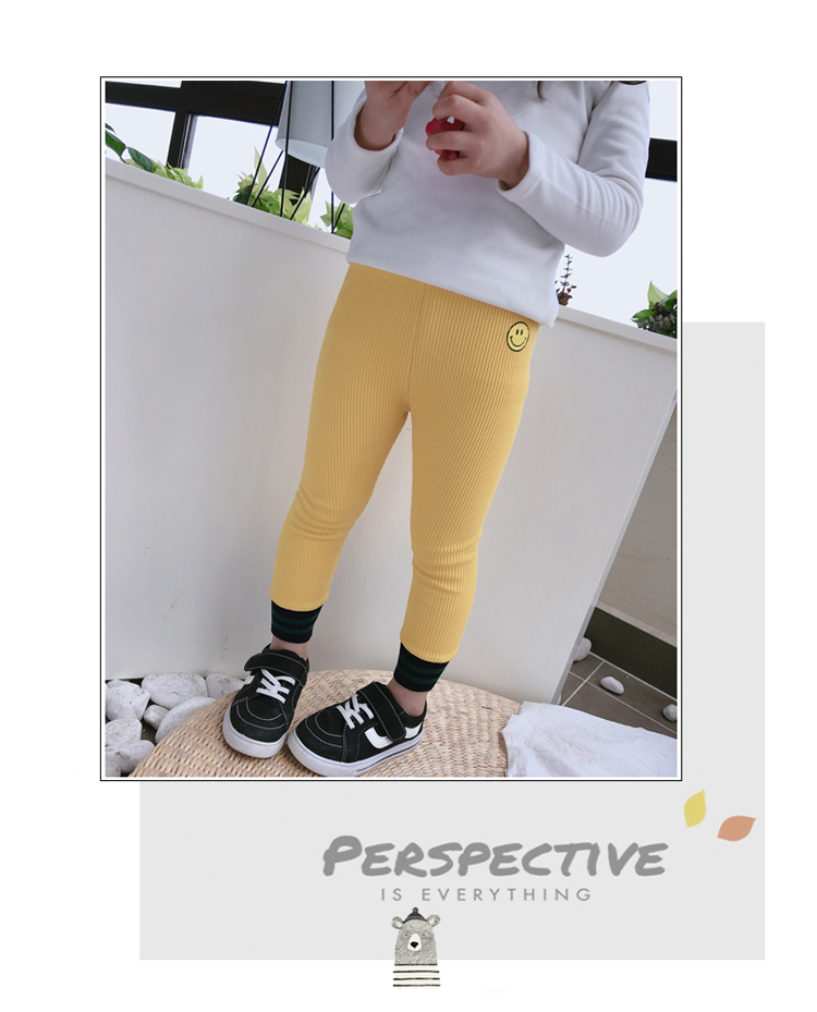 2019中小童冬季新款 女童笑臉純色百搭打底褲松緊腰坑條修身長褲1入