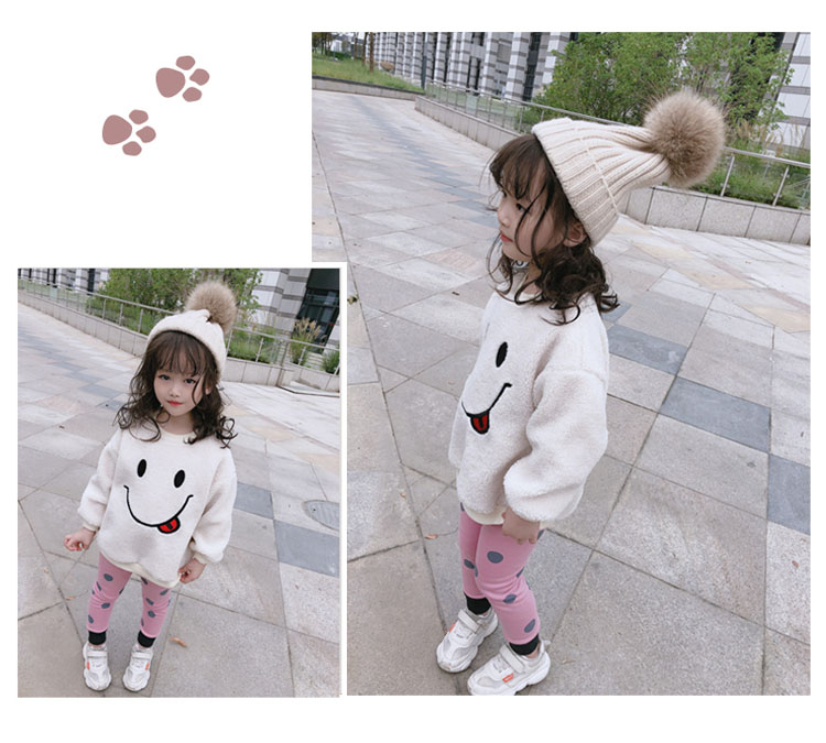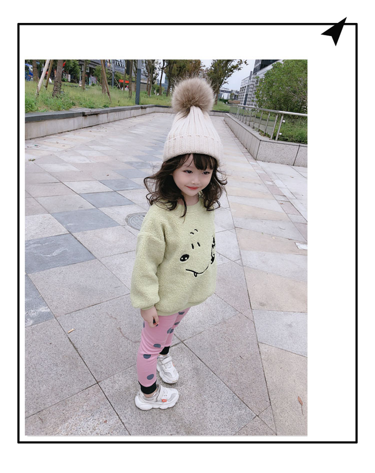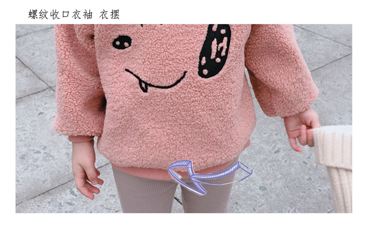 2019冬季新款中小童舒適保暖毛絨上衣 兒童刺繡圖案圓領套頭衛衣1入