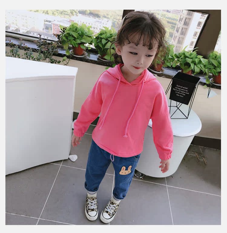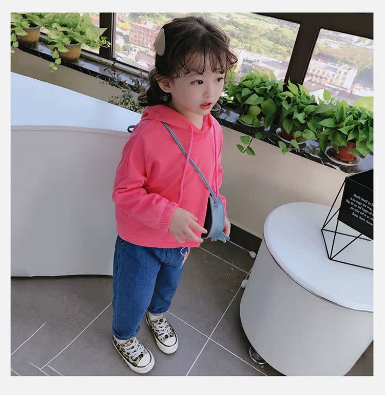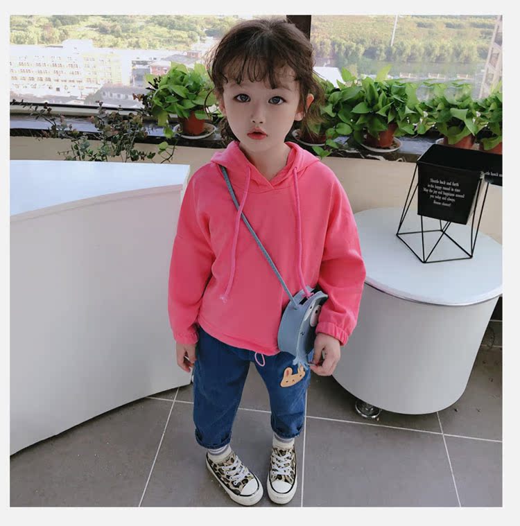 2019春秋季新款 男女童寬松純色套頭衛衣 中小童可愛帥氣連帽上衣1入